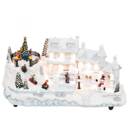 Home DRM 16 dioráma, fehér ház, LED, fenyőfa, beltéri