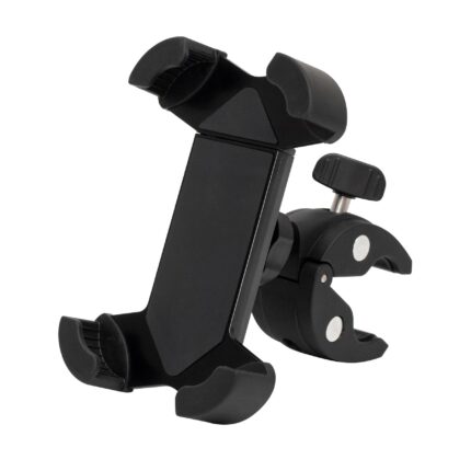 SAL SA065 kerékpáros, rolleres mobiltartó, masszív tartóbilincs, biztonsági retesz, védett sarokelemek, gumi és szilikonbetétek, 18 – 45 mm kormányátmérőre