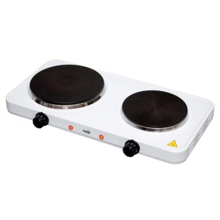Home HG R 02WH hordozható elektromos főzőlap, dupla, teljesítmény 1000 W + 1500 W, ∅15 cm + ∅18 cm főzőfelület, zománcozott készülékház, fehér