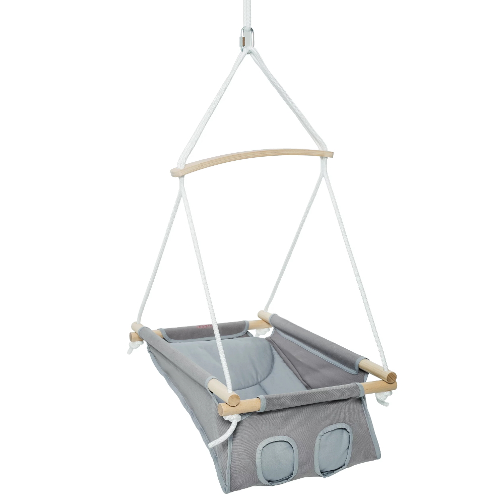 Az Adamo hinta, a rég elfeledett bölcsõ és az egy ponton függesztett hinta ötvözete. Újszülött kortól, egészen a baba 3 éves koráig tudjátok használni! Egy ponton, egy rugóval ellátott kötélzeten függeszkedik, így minden irányú mozgást tud produkálni. Használható bölcsõhintaként, ülõhintaként, rugós hintaként. Egyszerûen megunhatatlan!