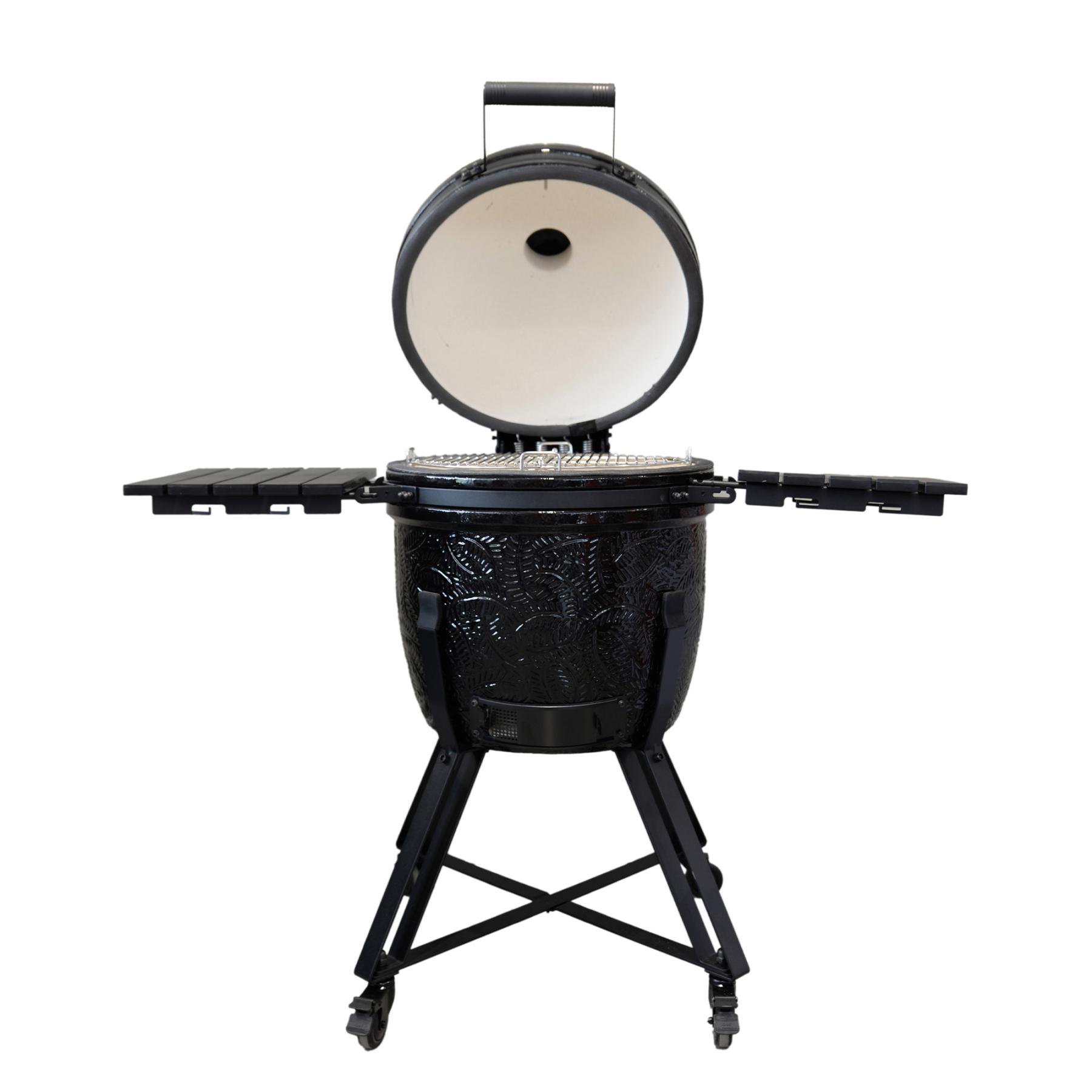 Ez a matt fekete kivitelű Kamado grill nemcsak elegáns megjelenést biztosít, hanem a legjobb minőséget nyújtja a kültéri sütés és főzés terén. Akár grillezni, füstölni vagy lassú tűzön főzni szeretne, a Kamal Kamado grill minden igényt kielégít. A könnyű használat, a tartós anyagok és a sokoldalú kiegészítők miatt ez a grillsütő hosszú távon megbízható társa lesz minden kerti partin és családi összejövetelen.