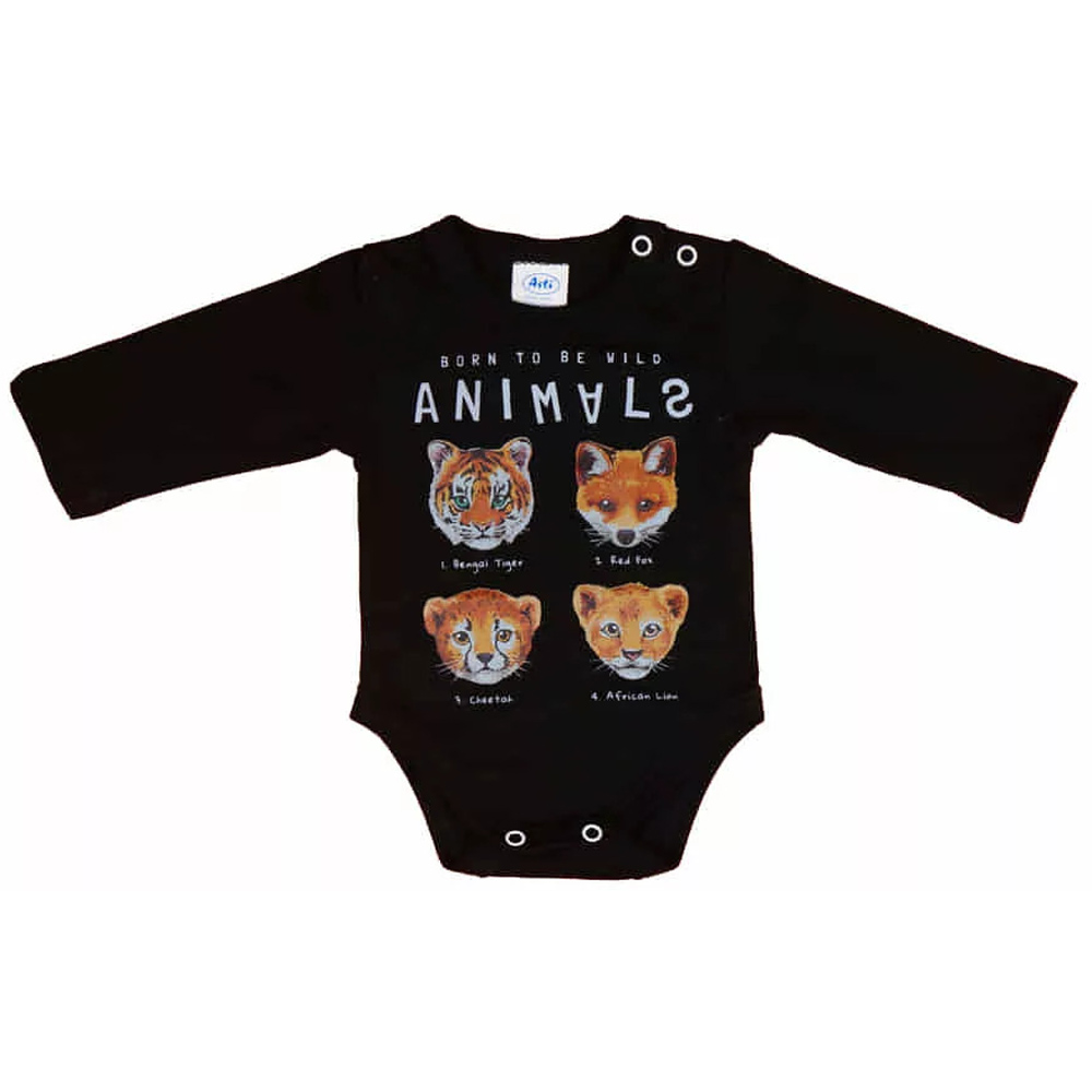 Kisbabák ruhatárának praktikus alapdarabja a body. Ez a cuki Animals mintával nyomott baba body minõségi, bababarát 100% pamut anyagból készült, szín- és formatartó anyagból, ami jól bírja a gyakori mosást is. Vállán patentos, így megkönnyíti a baba öltöztetését. A lába közötti patentos megoldás, pedig a gyors peluscserét teszi lehetõvé.