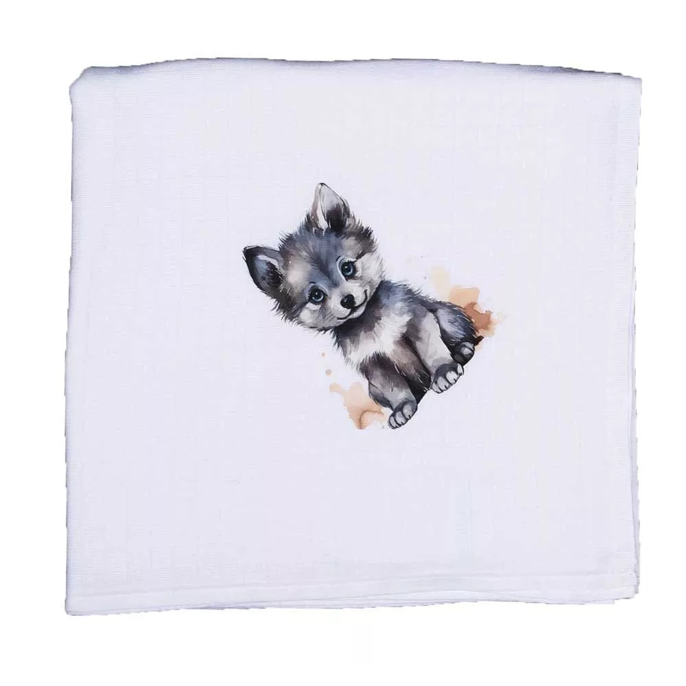 Csupán egy pelenka, de mégis annál sokkal több! A gyönyörû farkas mintával díszített, 70x70cm-es textil tetra pelenkánk puha, kényelmes, és tökéletesen megfelel mindennapi használatra. Fehér színével és édes farkas mintájával ez a pelenka nem csak hasznos, de igazán stílusos kiegészítõje is lesz babád ruhatárának.