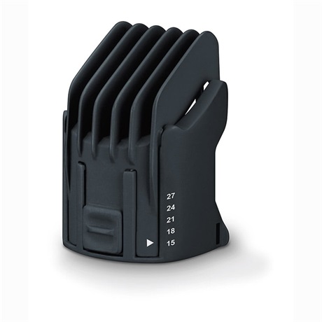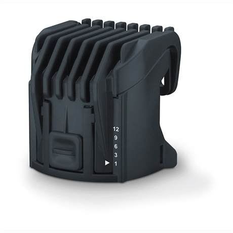 10 különféle vágási hossz 2 állítható hosszúságú fésű feltéttel: 1–12 mm és 15–27 mm