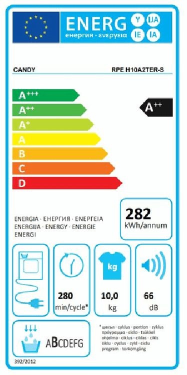 Candy RPE H10A2TER-S fehér, 10 kg, hőszivattyús, szárítógép RPE H10A2TER-S