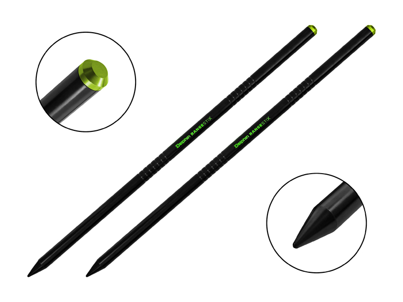 A RangeSTIX két bevágásokkal ellátott alumínium pálcából áll. Ezek a bevágások a damil vagy a fonott zsinór bennük való elhelyezésére szolgálnak, így nem áll fenn annak a veszélye, hogy a távolságmérés során a zsinór véletlenül lecsúszik a pálcákról. Természetesen van egy 3 méter hosszú mérőkötél, amely mindkét végén fűzőlyukakkal van felszerelve a rudak rögzítéséhez. A RangeSTIX egy praktikus textil tokban kapható, így mindig minden el helyen megtalál.