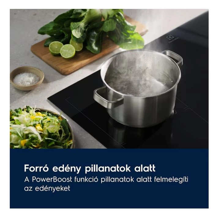 A PowerBoost funkció intenzív hőfokot biztosít, amivel gyorsan felmelegítheti a lábasokat és serpenyőket. Tökéletes krumpli főzéséhez, sült húsokhoz és más, azonnali magas hőfokot igénylő ételek elkészítéséhez.