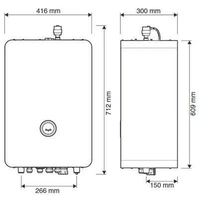 Elektromos kazán 17,82 kW teljesítménnyel, 6 lépcsős automatikus modulációval. Beépített digitális kijelzővel és hibakód kijelzéssel. Modulációs szivattyúval. 3 fázisú elektromos csatlakoztatási lehetőséggel. IP40 elektromos védettség. Maximális üzemi nyomás: 3 bar. Maximális előremenő vízhőmérséklet: 85 °C. Beépített 7 literes tágulási tartállyal és biztonsági szeleppel. 230 V-os on-off termosztát csatlakoztatási lehetőség. Méretek: Szé x Ma x Mé: 416 x 712 x 273 mm. Tömeg: 22 kg. Energiahatékonysági osztály: D.