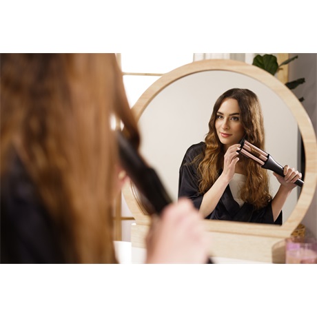 • Állítható magasságú középső göndörítő rúd (göndörítési méret) – 18/22/26/32 mm