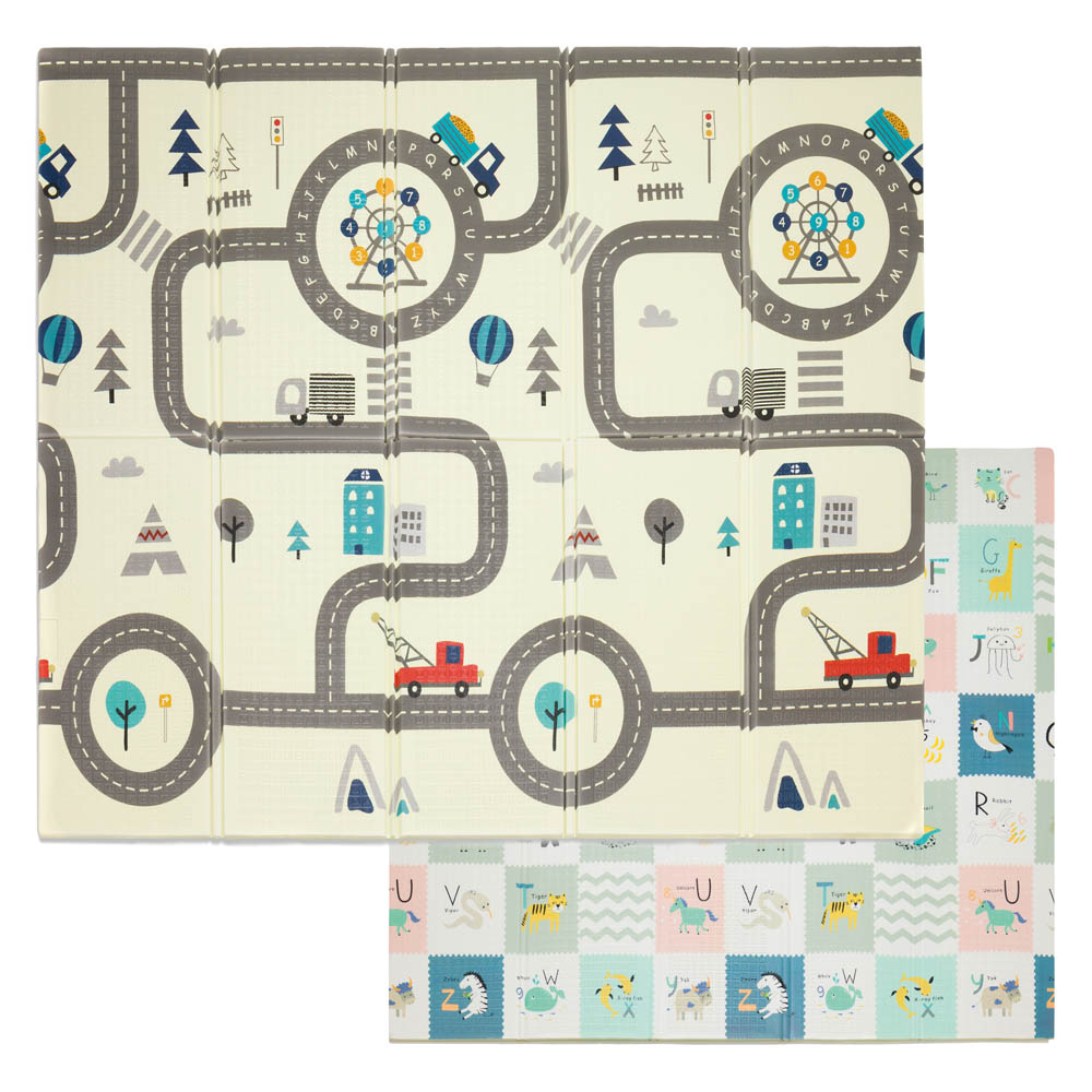 Az utca térképes játszószõnyeg ideális kisgyermeke számára, amely több órányi szórakozást biztosít bent és kint egyaránt. 180x200x1 cm-es méretével elegendõ helyet kínál ötletes kalandokhoz és kreatív játékokhoz.