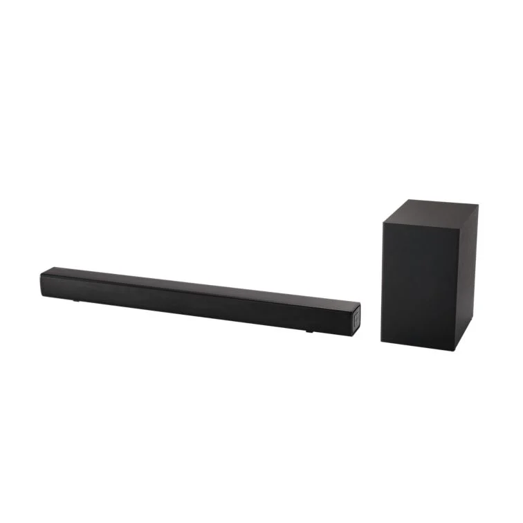 100 W kimeneti összteljesítmény A 2.1 csatornás HTB150 hangprojektor főegysége két hangszórót tartalmaz, vezeték nélküli mélysugárzójával együtt pedig figyelemre méltó 100 W kimeneti összteljesítményt biztosít. Hangzása lényegesen dinamikusabb annál, amit a kompakt méret sejtet! Vezeték nélküli speciális mélysugárzó (55 W) A mélysugárzó vezeték nélküli, Bluetooth®-kapcsolódású, hogy legjobb élményt nyújtó pozícióba lehessen helyezni. A létfontosságú mélysugárzó gyönyörűen kibővített basszussal fejleszti tovább a rendszer hangvisszaadási paramétereit. Egyszerű TV-csatlakoztatás HMDI ARC-vel A HTB150 és a TV csatlakoztatása csak egy kábelt igényel. A könnyen csatlakoztatható HDMI-kábel* ARC-vel küldi a sztereó hangot a TV-ről a hangprojektor erősebb hangszóróira – a film hangja életre kelve fokozza a hatást. * Külön szerezhető be Prémium felületminőség és fémhálós hangszórórács Kecses formájával, elegáns fényes fekete felületével és fémhálós rácsával a HTB150 hangzásban és látványban is kiegészíti a TV-t. Diszkréten a TV alatt meghúzódva nem vonja el a figyelmet a képernyőről. Bluetooth® sztereó zenelejátszáshoz A HTB150 modell Bluetooth®-kompatibilis, így vezeték nélkül játszhatók le rajta az okos eszközökről származó zenék is. A számok kiválasztása és a hangerőszabályzás magán az intelligens eszközön történik, hogy a dallamokat könnyedén megoszthassa ezzel az erőteljes 100 W-os hangszórórendszerrel. Csatlakozás optikai bemenettel A legjobb hangminőségre vágyó felhasználók előszeretettel csatlakoztatják hangprojektorukat optikai kábellel a TV-re. Az optikai kábellel kiváló sztereó hangzás érhető el. Tulajdonságok: