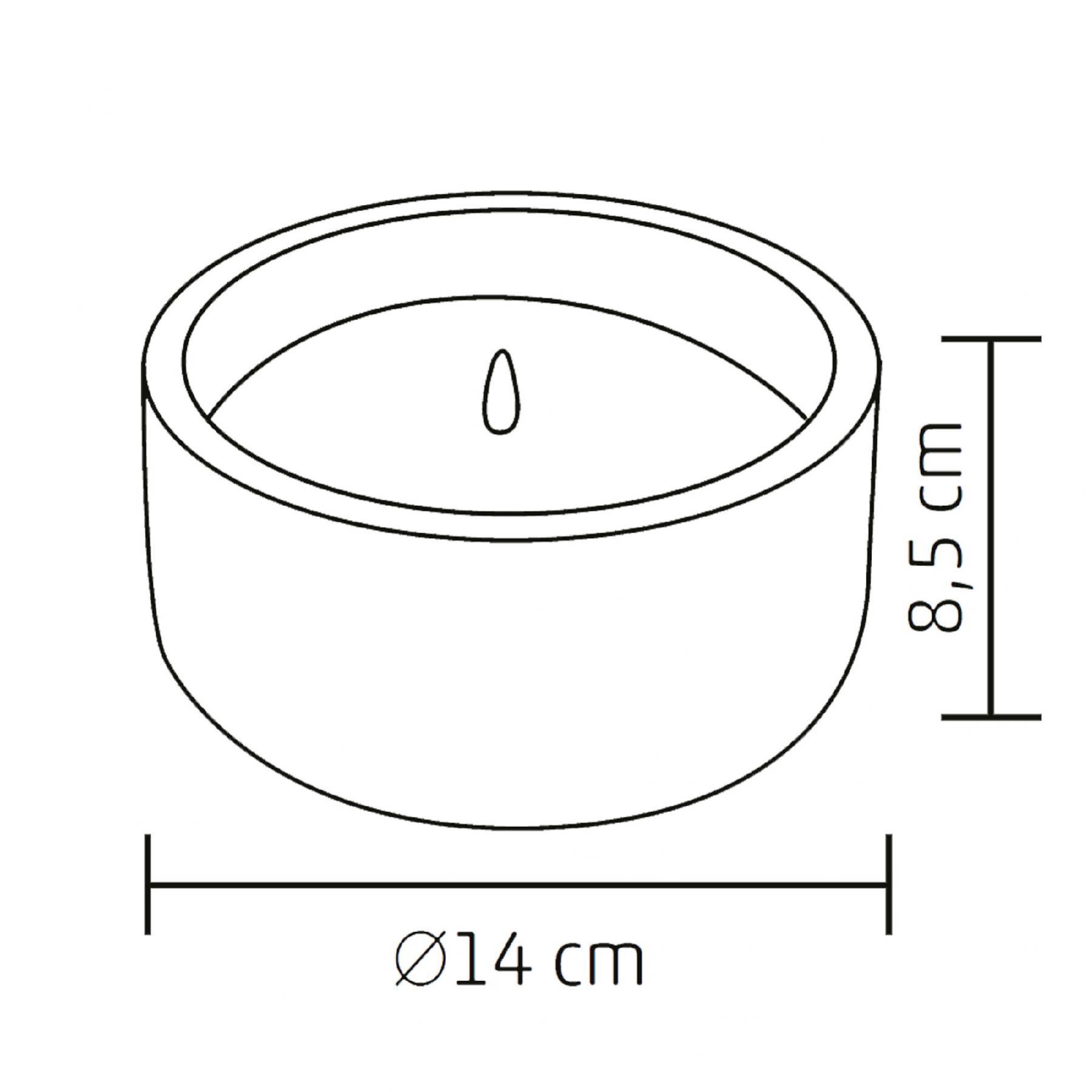 Ez a különleges mécses melegfehér, pislákoló, lángnyelv alakú LED-fénnyel működik, amelyet valódi viasz burkol, így minden szempontból élethűen utánozza a hagyományos gyertyák hangulatát. Az eszköz praktikus, 6 órás automatikus bekapcsolási időzítővel rendelkezik, melyet 18 óra szünet követ, így naponta ismétlődően magától működik. A tápellátást 3 darab 1,5 V-os AA elem biztosítja (nem tartozék), így a mécses hosszú üzemidőt nyújt anélkül, hogy állandó figyelmet igényelne. A 14 cm átmérőjű és 8,5 cm magas kőmécses kiválóan illik bármely belső térbe, legyen az nappali, hálószoba vagy akár egy hangulatos étkezőasztal.