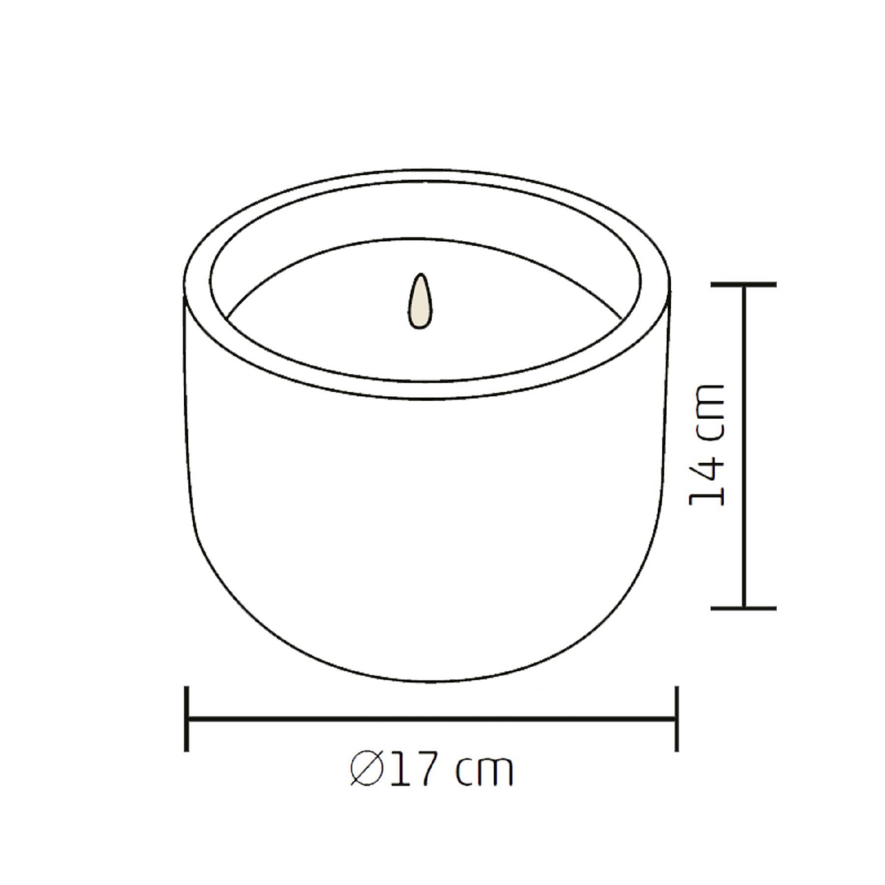 Ez a prémium kőmécses melegfehér, pislákoló LED-fényt bocsát ki, amely lángnyelv alakú fényével élethűen utánozza a valódi gyertya lángját. Valódi viasz, amely természetes megjelenést kölcsönöz, így bármely enteriőrbe tökéletesen illeszkedik. A 6 órás automatikus időzítő funkciónak köszönhetően a mécses magától kapcsol be és ki (6 óra világítás után 18 órás kikapcsolási ciklus következik), így egyszerűen használható, és nem igényel állandó figyelmet. A mécses működéséhez 3 darab 1,5 V-os AA elem szükséges (nem tartozék). Nagyméretű, 17 cm átmérőjű és 14 cm magas kivitele különleges megjelenést biztosít, amely szemet gyönyörködtető dísze lehet nappalijának vagy hálószobájának.
