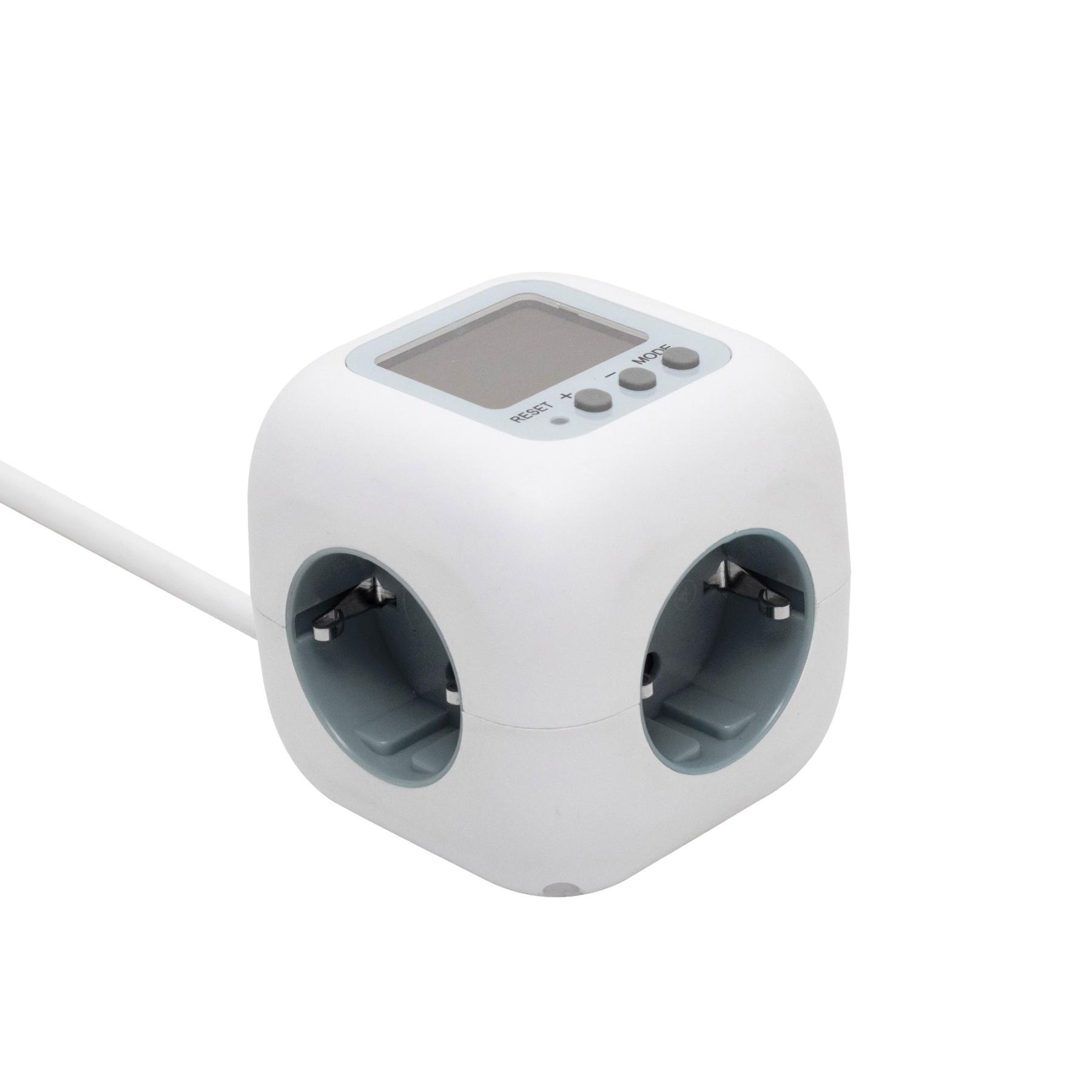 Home CUBE2P kocka elosztó, fogyasztásmérővel, max. 3680 W, 3 aljzat gyermekvédelemmel, 1,5 m hosszú vezeték