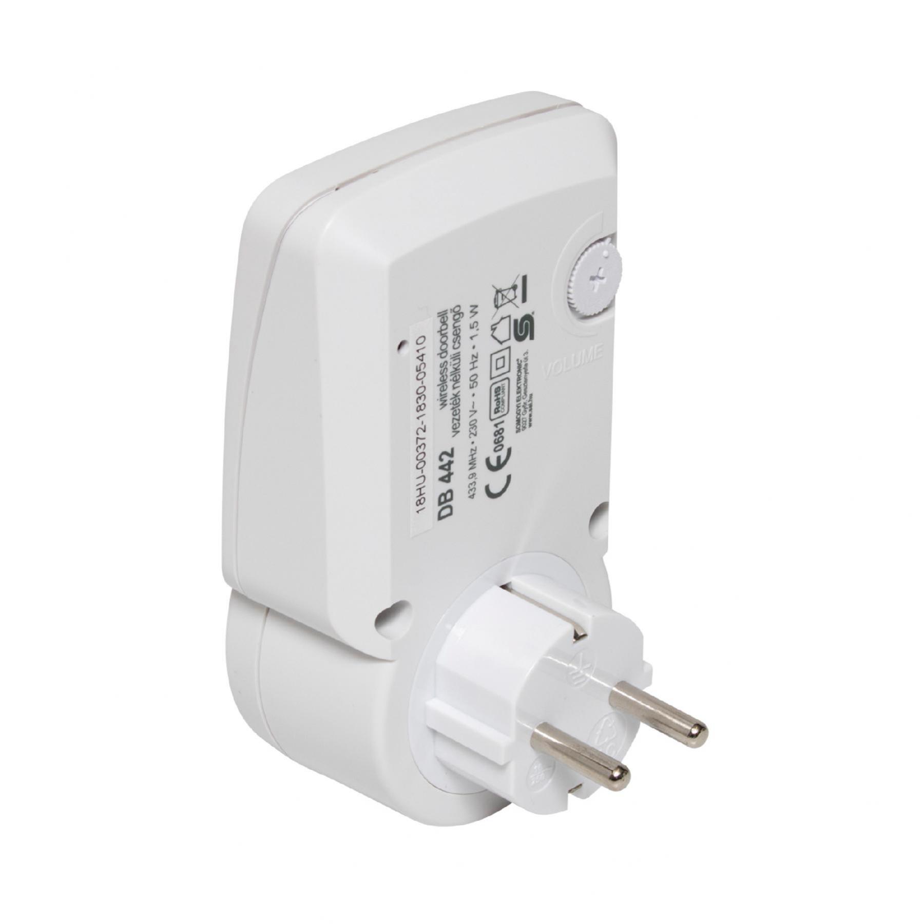 Home DB 442 vezeték nélküli csengő, 100m hatótáv, 4 nyomógombbal bővíthető, memória, beépített 13A hálózati aljzat, 230V-os tápellátás