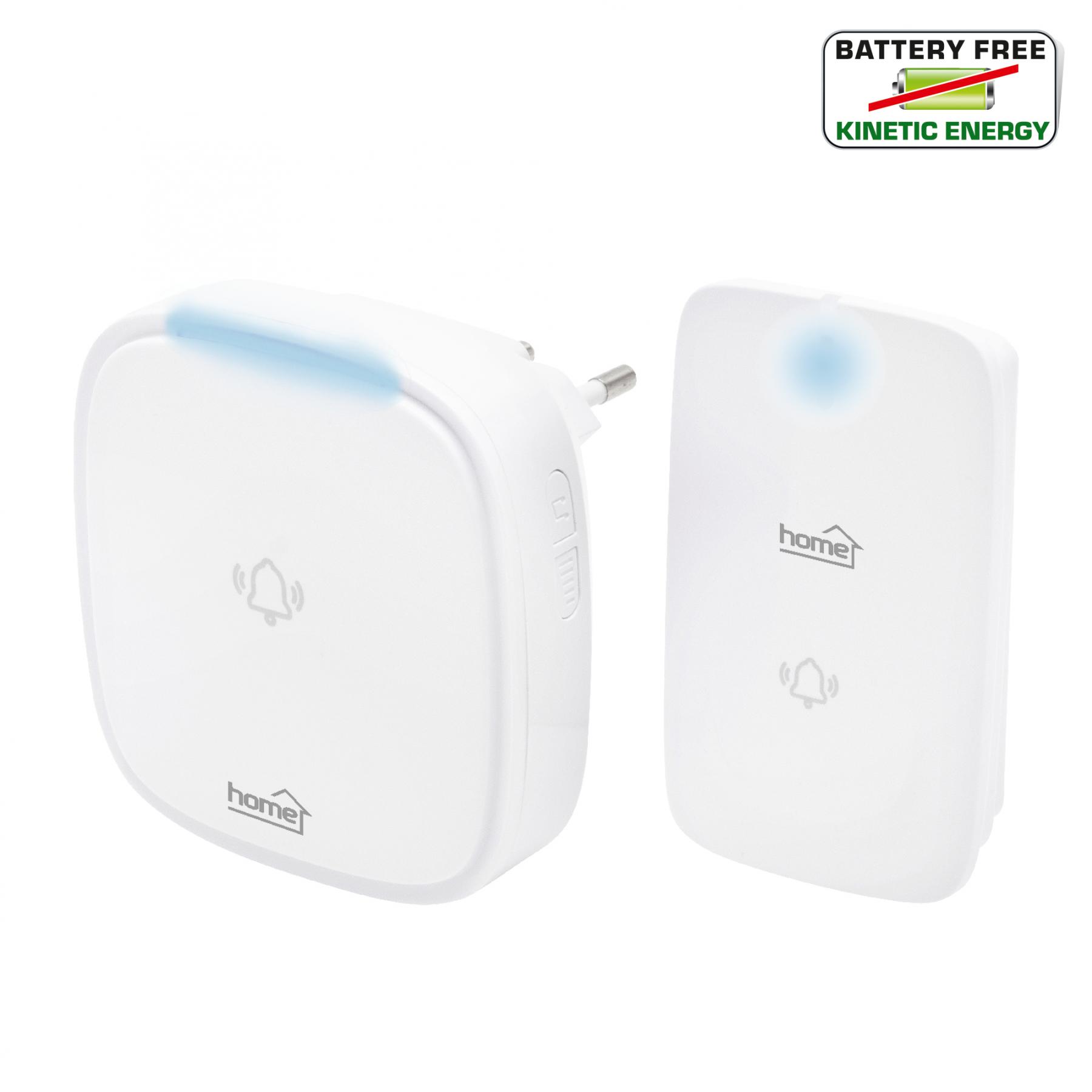 Home DBK 1500AC vezeték nélküli csengő, elem nélküli, 150m hatótáv, 36 dallam, 4 fokozatú hangerő, fényjelzés, kinetikus nyomógomb, 230V-os tápellátás