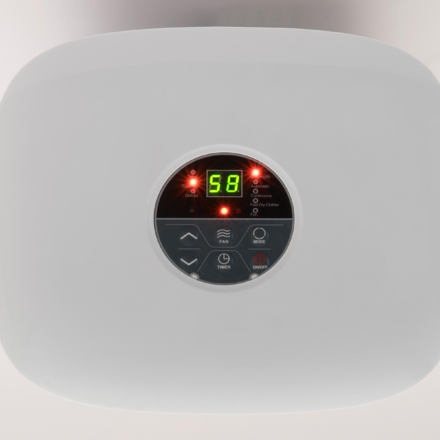 Kifejezetten kisebb helyiségek, 10-20 m² méretű szobák számára készült, hatékonyan szabályozva a páratartalmat. Ez a párátlanító akár 10 liter vizet is képes eltávolítani a levegőből naponta, 30°C hőmérsékleten és 80%-os relatív páratartalom mellett. Alacsonyabb, 27°C hőmérsékleten és 60%-os páratartalom mellett is megbízhatóan működik, napi 5 liter vízkivonási kapacitással. A készülék segítségével beállítható a kívánt páratartalom, amely 30% és 80% között szabadon választható, így könnyen biztosítható az optimális légállapot a helyiségekben.