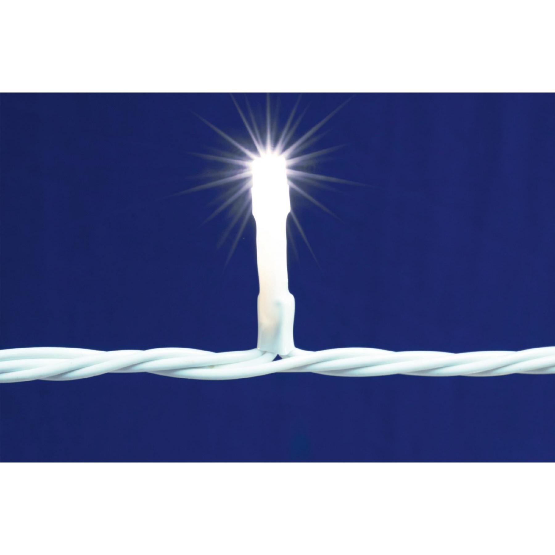 Ez a 10 méter hosszú fényfüggöny 400 hidegfehér LED-del rendelkezik, melyek ragyogó, állófényű világítást biztosítanak. A fehér vezeték diszkréten simul a környezetbe, így a figyelem teljes mértékben a tiszta, ragyogó fényekre irányul. A 3/7/4/6 elosztásban kialakított füzérek 20 csoportban oszlanak el, így biztosítva a fények egyenletes eloszlását, miközben a sorolható kialakítás lehetővé teszi, hogy több DLI, DLF vagy DLFJ terméket összekapcsoljon, és lenyűgöző fényhatásokat hozzon létre.