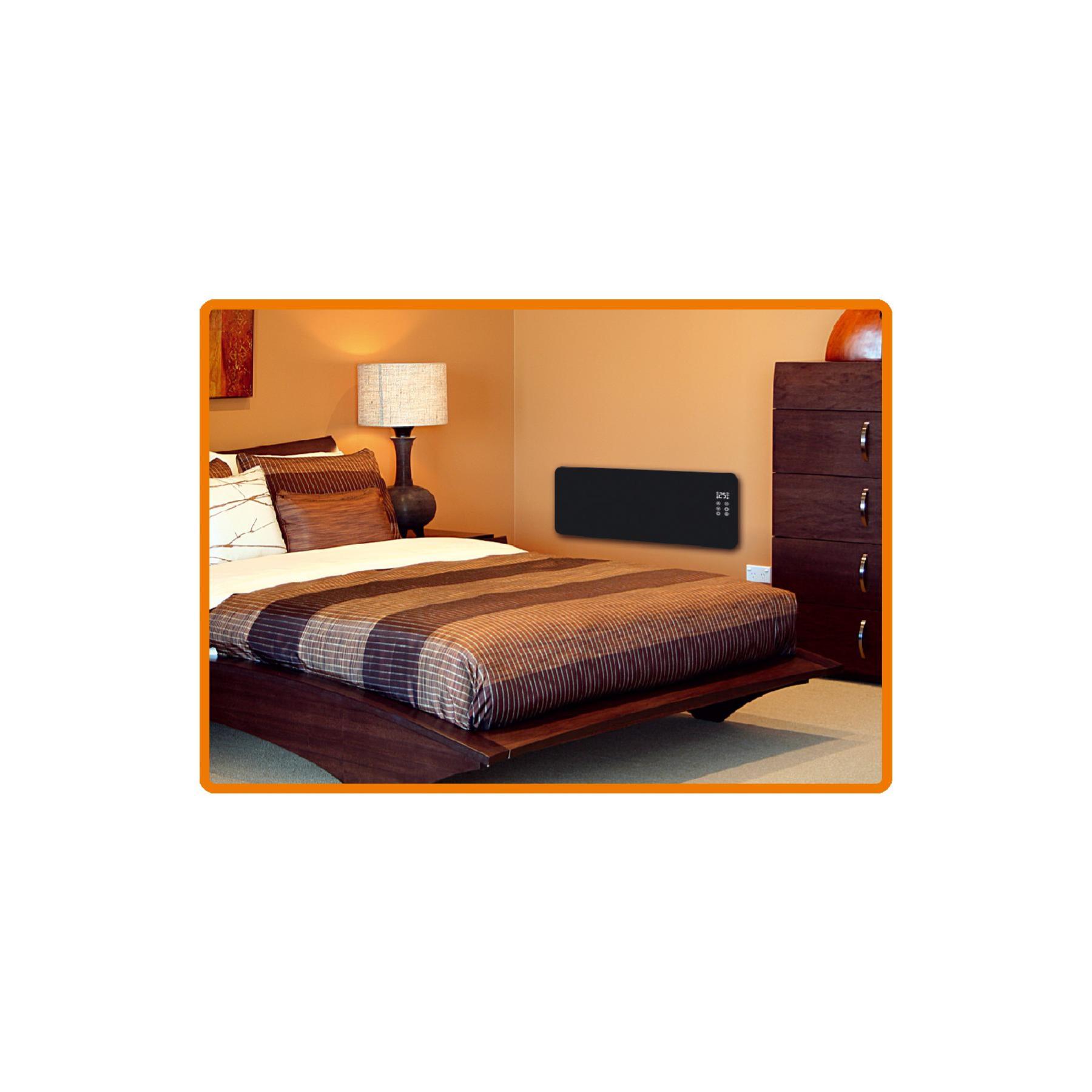 Ez a stílusos fekete készülék edzett üveg előlappal rendelkezik, amely nemcsak elegáns megjelenést kölcsönöz, hanem tartósságot is biztosít. Két fűtési fokozata van: 1000 W és 2000 W, így bármikor az igényeinek megfelelően szabályozhatja a hőmérsékletet. A készülék érintőgombokkal és okostelefonos alkalmazással is vezérelhető, így akár távolról is kényelmesen irányíthatja a fűtést. Az elektronikus termosztát segítségével pontosan beállíthatja a kívánt hőmérsékletet, míg a kikapcsolásidőzítés funkcióval előre meghatározhatja a fűtés időtartamát. Az IPX4 védelem biztosítja, hogy a készülék fröccsenő víz ellen is védett legyen, így akár fürdőszobában is használható.