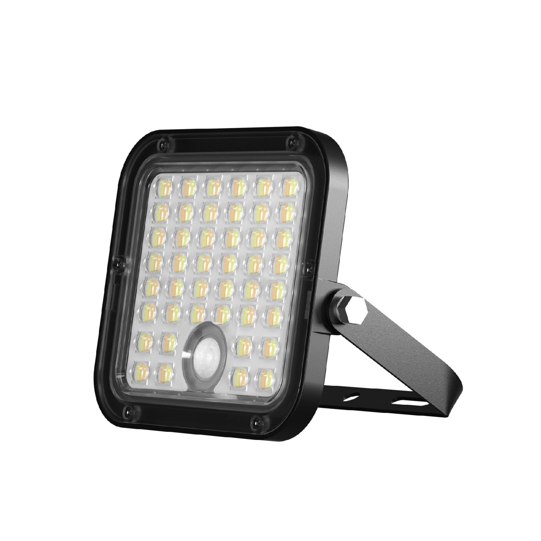 – PIR mozgásérzékelő 120°-os látószöggel: A mozgásérzékelő akár 6 méteres távolságból is érzékeli a mozgást, majd 100%-os fényerővel világít. Amikor már nincs mozgás, a reflektor automatikusan 5%-os fényerőre vált 30 másodperc után, így energiatakarékosan működik.