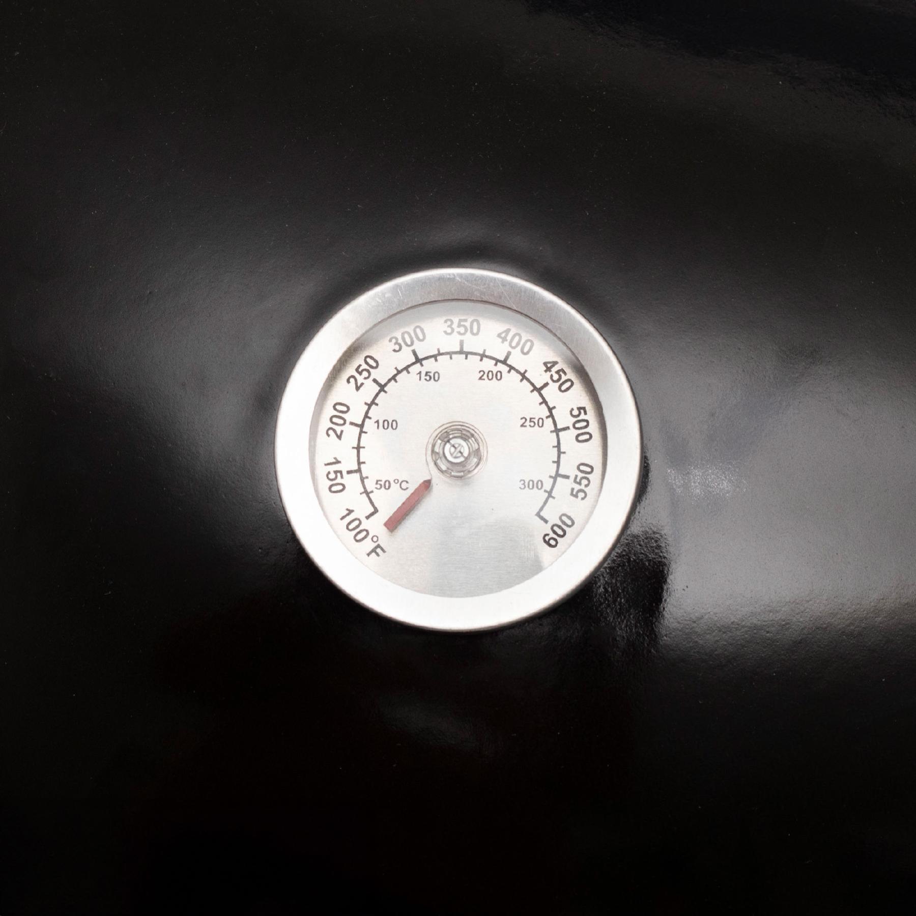 A 76 cm magasságban elhelyezkedő rostély tökéletes hőmérsékletet kínál a grillezéshez, míg a fedélbe épített hőmérő segítségével mindig tökéletes eredményt érhet el. A levegőszabályozók a fedélen és a hamutartályon egyaránt megtalálhatóak, így a grill hőfokát egyszerűen szabályozhatja. A 11 kg tömegű gömbgrill könnyen eltávolítható hamutartálya pedig még a takarítást is megkönnyíti.
