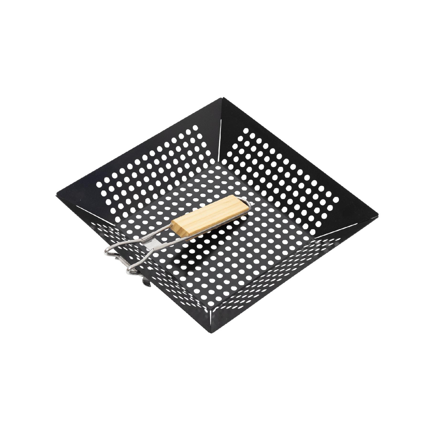 A 305 x 305 x 50 mm-es méretű sütőkosár bőséges helyet kínál nagyobb adag étel elkészítésére is, így akár egy családi grillezésre vagy baráti összejövetelre is ideális. A szögletes kialakítás nemcsak elegáns megjelenést biztosít, hanem könnyebben illeszkedik a grillsütők többségébe is, hatékonyabban kihasználva a rendelkezésre álló sütőfelületet.