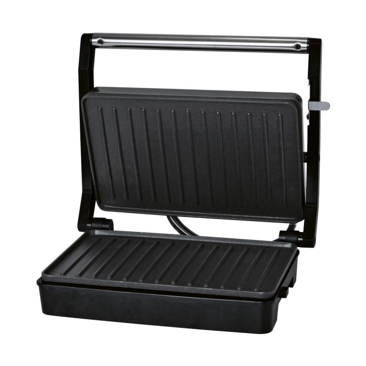 A tapadásmentes bevonat nem csak a könnyű és egyenletes sütést garantálja, de hozzájárul a grill könnyű tisztításához is. Különlegességét az étel magasságához alkalmazkodó párhuzamos sütőfelületek adják, melyek optimalizálják a hőátadást és az ízletes eredményt. Az eszköz sütőfelületének mérete 230x145mm, ami tökéletes választás kisebb és nagyobb falatokhoz egyaránt. Biztonságos használatot a túlmelegedés elleni védelem garantálja. Az elegáns és kompakt méretű, 27×7,5×24 cm-es kialakításnak köszönhetően a készülék kis helyen is elfér, így bármilyen konyhába tökéletes választás._x005F_x000D_