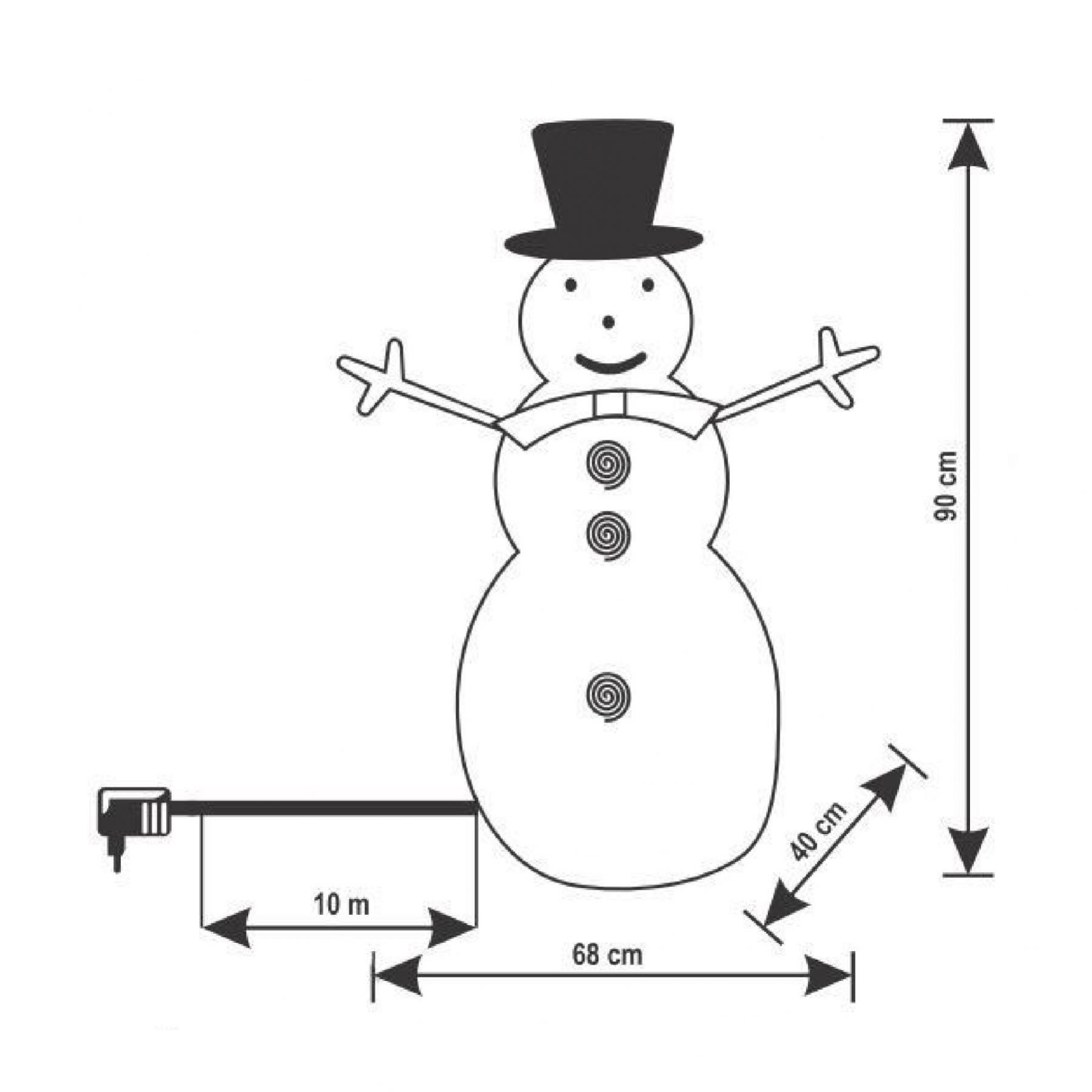 Ez a varázslatos dekoráció boldogságot csempész a téli időszakba. A KDA 9 akril hóember 80 hidegfehér/melegfehér LED fényforrással van ellátva, melyek a figura minden részét átvilágítják. A hóember három darabból áll.