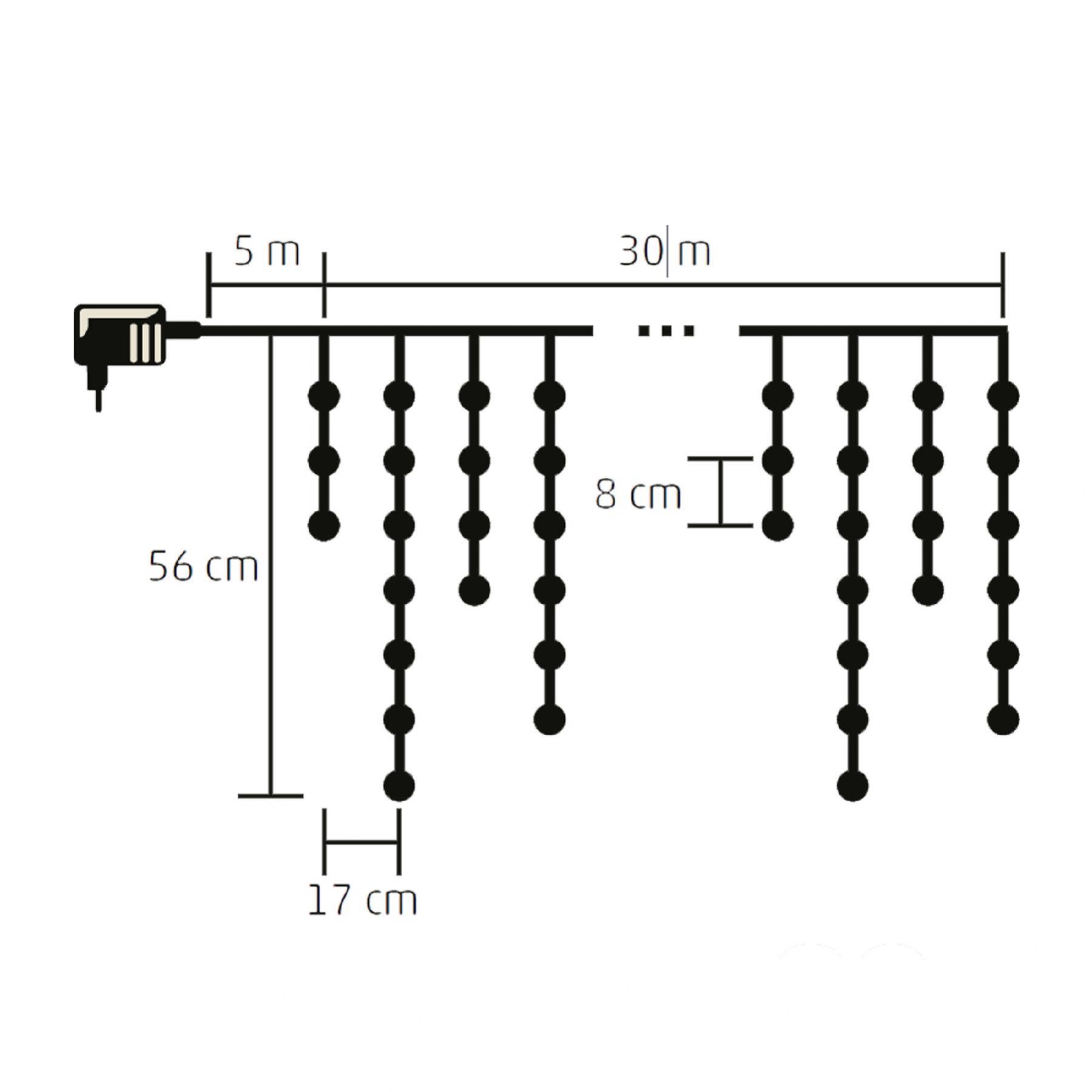 Home KKF 908/WW LED-es fényfüggöny, 30 m / 900 db melegfehér LED, 8 fényprogram, fehér vezeték, hálózati adapter, kül- és beltéri kivitel