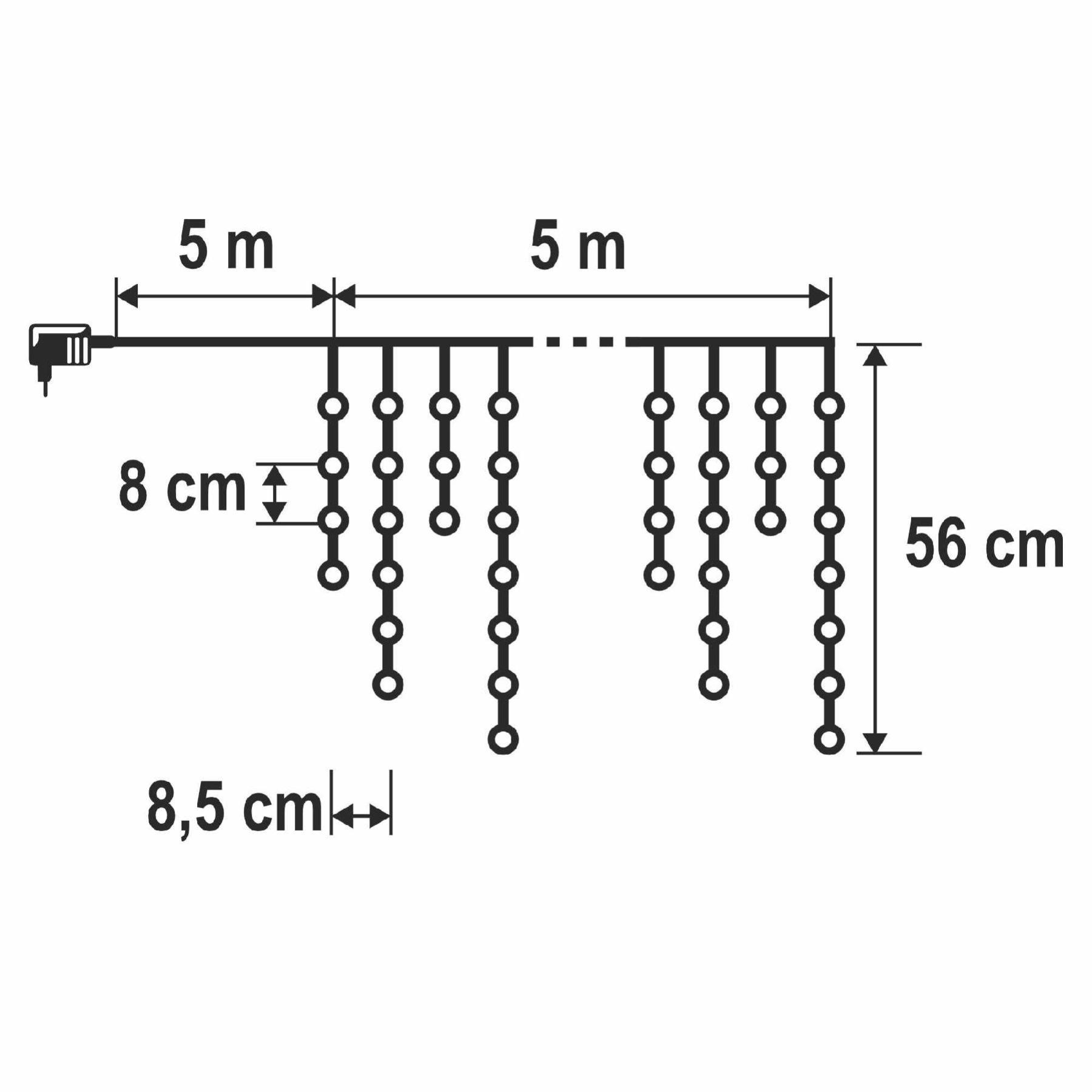 5 m x 56 cm • füzérek közötti távolság: 8,5 cm • LED-ek közötti távolság: 8 cm |