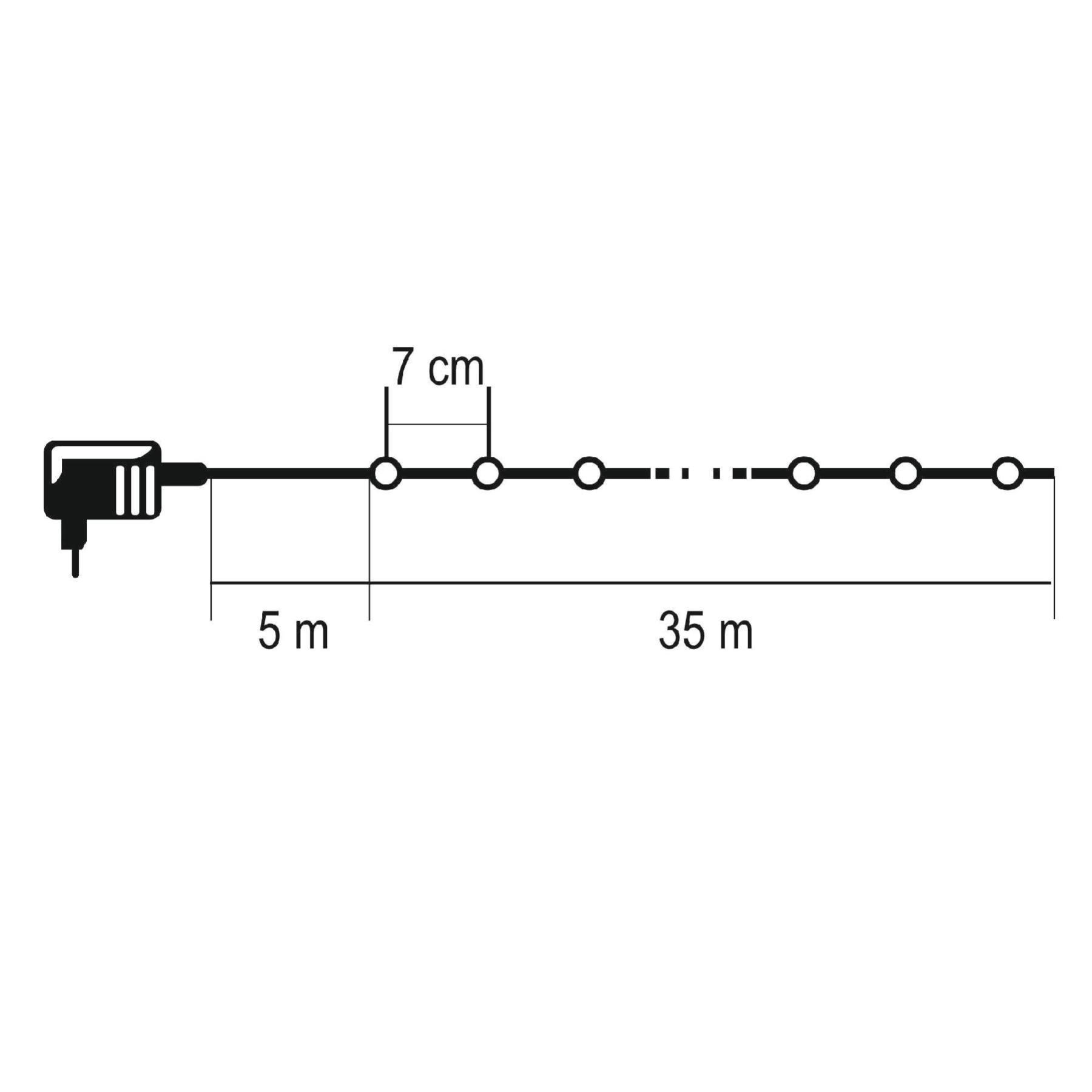 A hidegfehér LED-ek 7 cm-es távolságban sorakoznak a 35 méteres átlátszó vezetéken, amely tökéletesen beleolvad bármilyen háttérbe, így csak a fények kapnak hangsúlyt. A további 5 méteres tápkábel elegendő mozgásteret biztosít az elhelyezéshez, legyen szó karácsonyfa díszítésről, falra rögzítésről vagy polc alatti dekorációról.