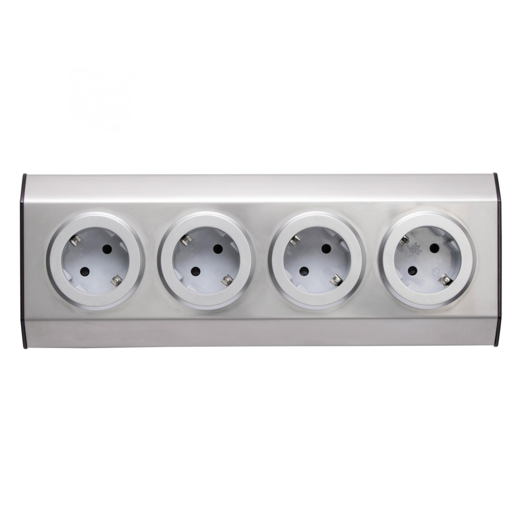 Home KNV 04 szerelhető konyhai hálózati elosztó, 3 védőérintkezős aljzat, rozsdamentes acél, felszerelés sarokba is, max. 3680W