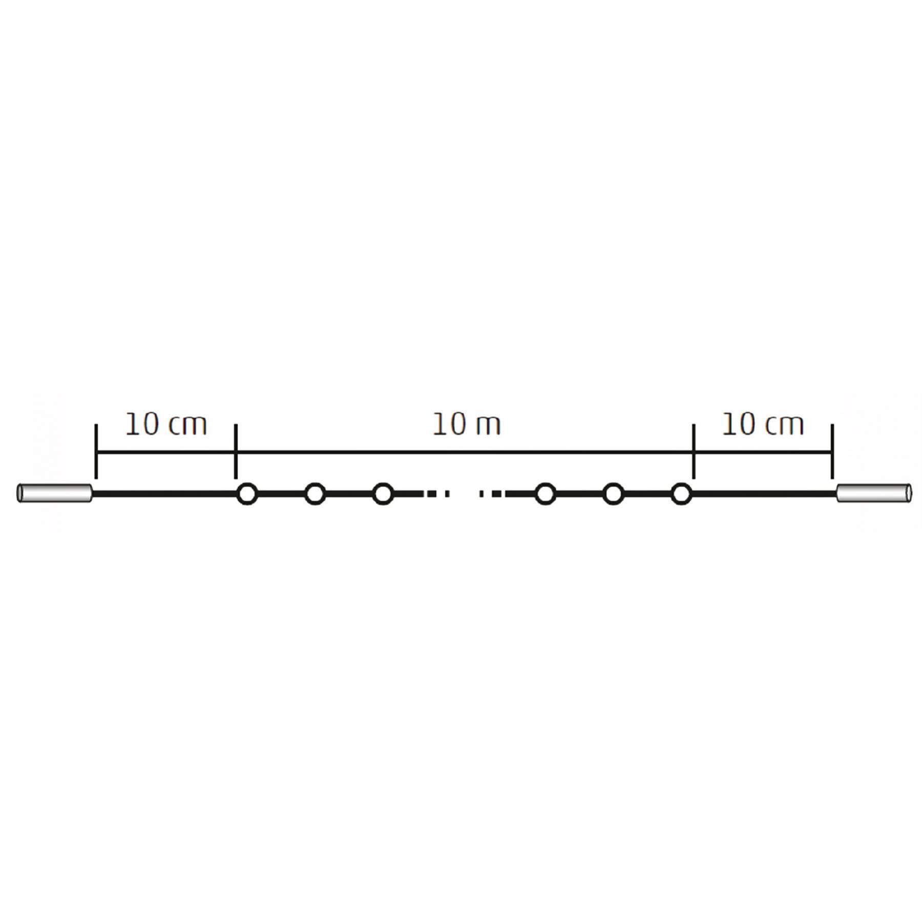 Ez a 10 méter hosszú fényfüzér 100 darab hidegfehér LED-del rendelkezik, amelyek karácsonyi dekoráció részeként is használhatók, de bármilyen alkalomra is ideálisak. A fényfüzért állófényű kialakítás jellemzi, fekete vezetékkel rendelkezik, amely szépen illeszkedik bármilyen környezetbe.