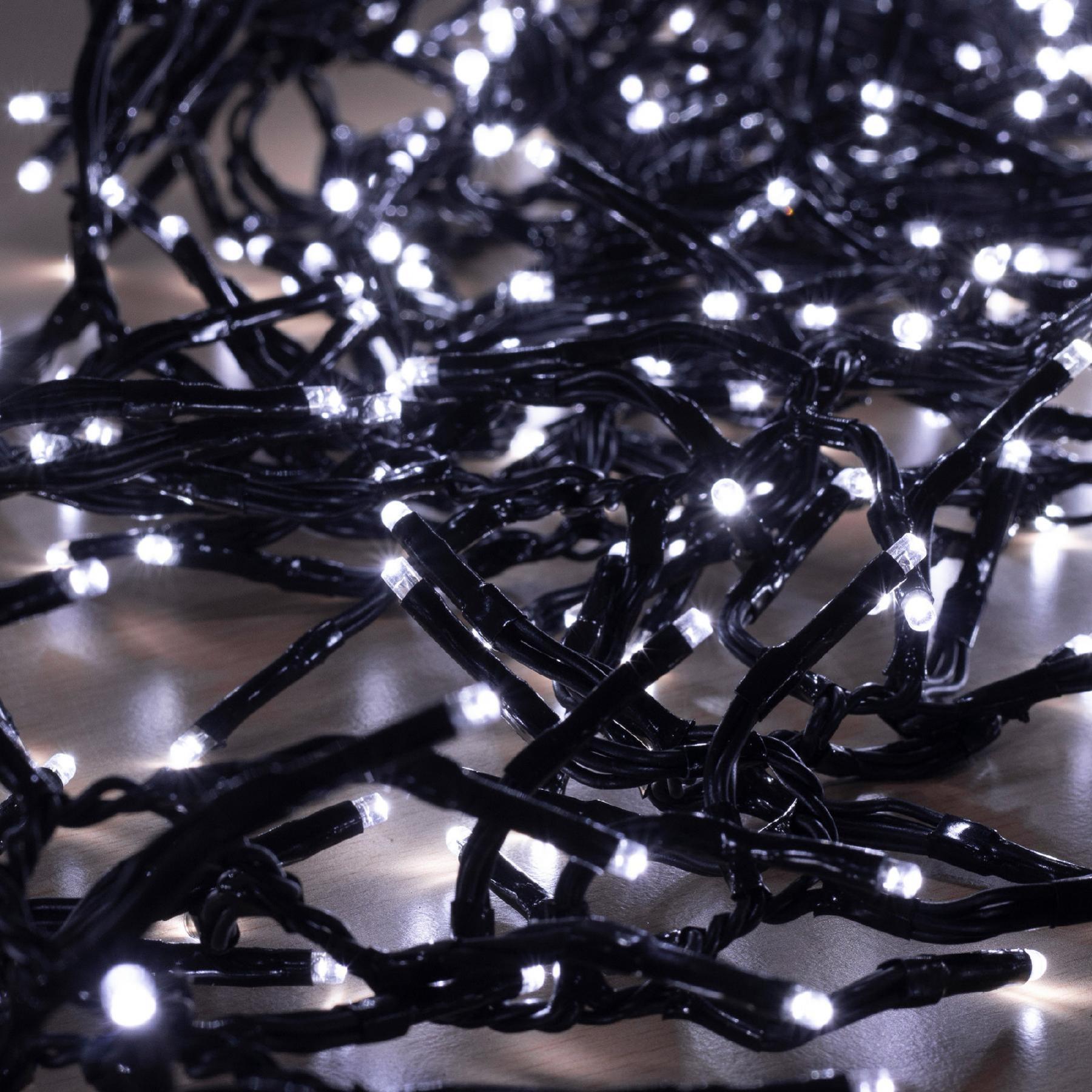 A 768 db apró, 3 mm-es átmérőjű hidegfehér LED fénye ragyogó atmoszférát teremt, amelyet a fekete vezeték harmonikusan egészít ki. A 8 funkcióval, memóriával rendelkező üzemmód és az állítható fényerő gondoskodik a mindig tökéletes hangulatról. Válasszon a 3 kiválasztható ismétlődő időzítés közül, vagy irányítsa a fényeket a mellékelt távirányítóval, melyhez CR2025 elem is tartozik. Az IP44-es hálózati adapter garantálja a megbízható kültéri használatot.