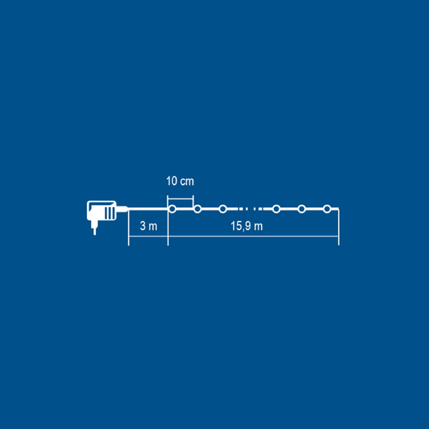 Ezt a rendkívüli fényfüzért beltérbe vagy szabadba is telepítheti, a vékony vezeték és a 160 darab hidegfehér microLED gondoskodik arról, hogy az eredmény mindig lenyűgöző legyen. Az füzér szikrázó fénye, valamint a hosszú, 15,9 méteres kábel egyaránt lehetővé teszi a kreatív dekorációt és a hangulatos megvilágítást.