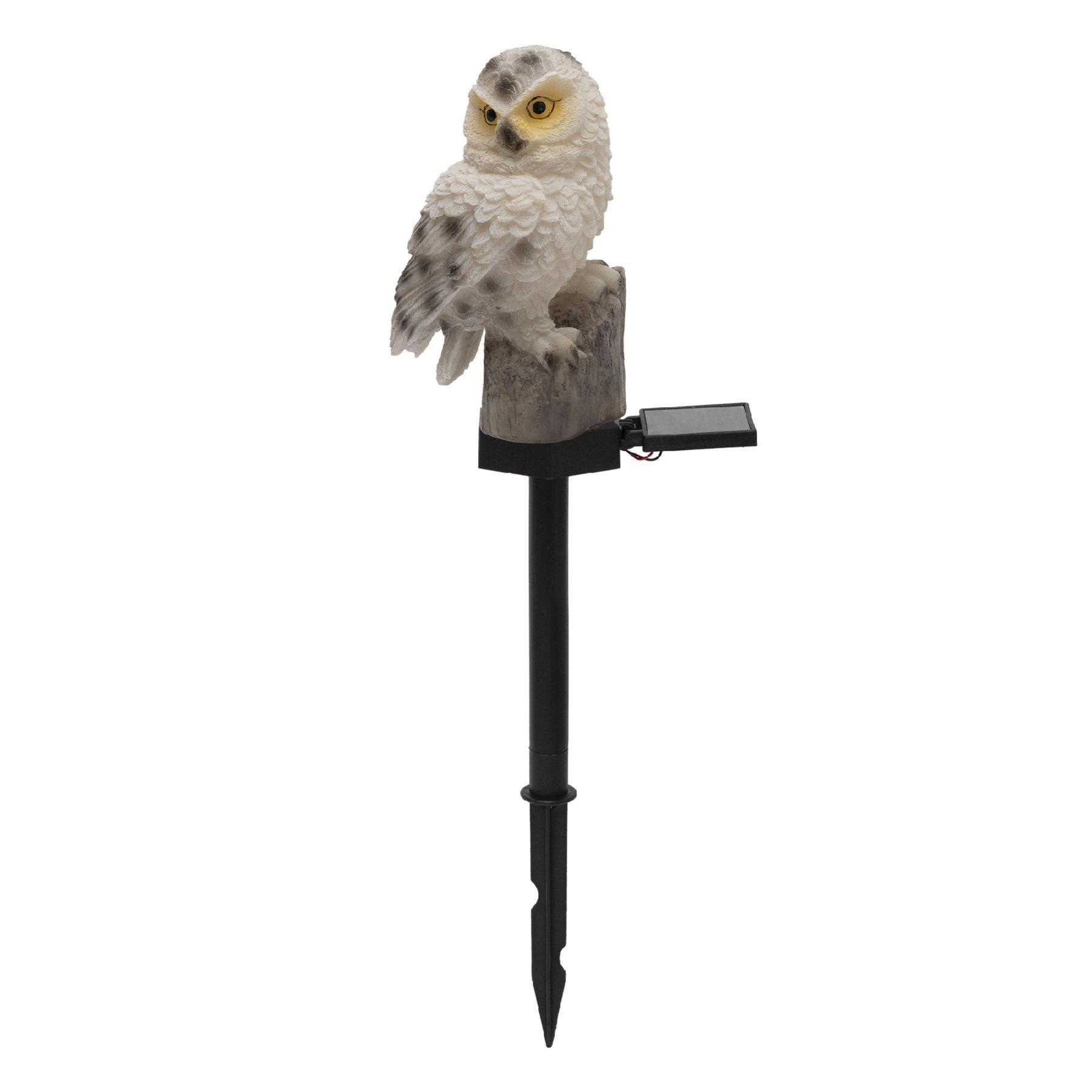 A bagoly formájú lámpa műgyanta és műanyag alapanyagai időjárásálló kivitelben készültek, amelyek hosszú élettartamot és ellenálló képességet biztosítanak az időjárási viszontagságokkal szemben. A könnyű, mindössze 238 g tömegű lámpa stabilan rögzíthető a talajba a 27 cm hosszúságú leszúró tüske segítségével.