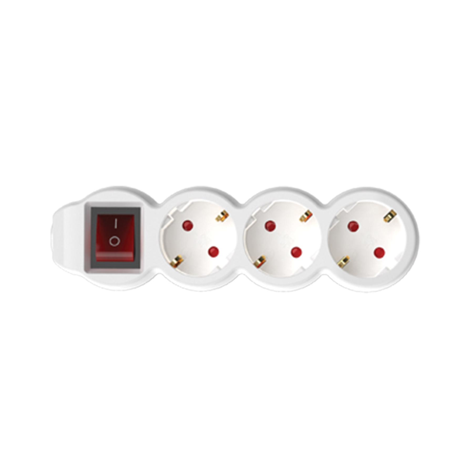 Home NV 3K/WH/1,5 hálózati elosztó, 1,5 m, H05VV-F 3G1,5 mm2 kábel, kétpólusú kapcsoló, IP20 kivitel, 3 védőérintkezős aljzat, max. 3500W, fehér