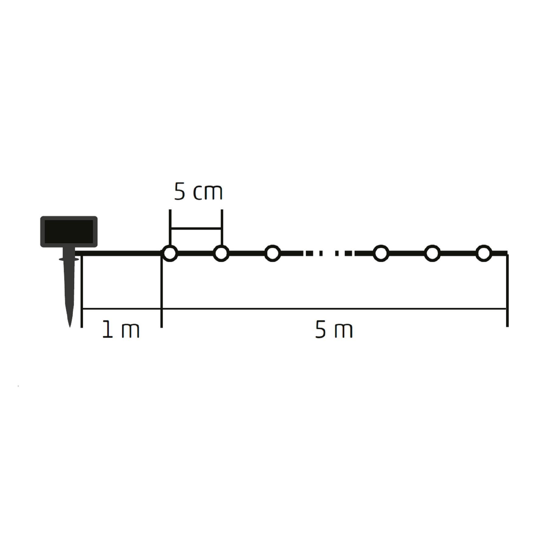 5 m füzérhossz (LED-ek távolsága: 5 cm) + 1 m tápkábel a szolár panelig |