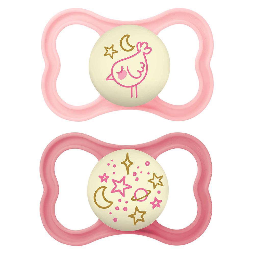 Az extra vékony és rugalmas szívóka lehetõvé teszi a zárt szájtartást, hogy a babák természetes módon tudják becsukni a szájukat cumizás közben. Ez a fogaknak elegendõ helyet hagy a normál növekedéshez. Az extra nagy szellõzõlyukaknak köszönhetõen különösen kíméletes a babák érzékeny bõréhez. A cumi gombja világít a sötétben.