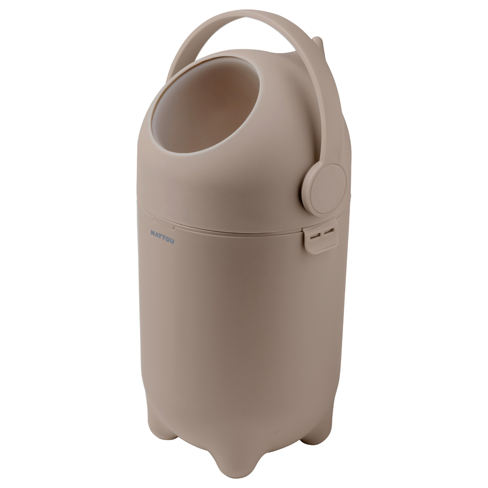 Könnyen kezelhetõ, akár egy kézzel is. A fogantyú felemelésével a pelenkát kidobjuk a kukába, majd leengedjük a fogantyút, hogy a pelenka a zacskóba essen.