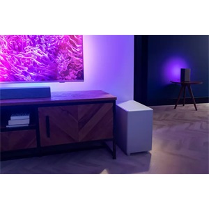 Szeretné érezni az autós üldözések moraját és a zene teljességét? Csatlakoztassa ezt a mélynyomót a TV-hez és egy pár kompatibilis vezeték nélküli hangszóróhoz, és teremtsen azonnali surround hangzást**. Ideális a moziestekhez!