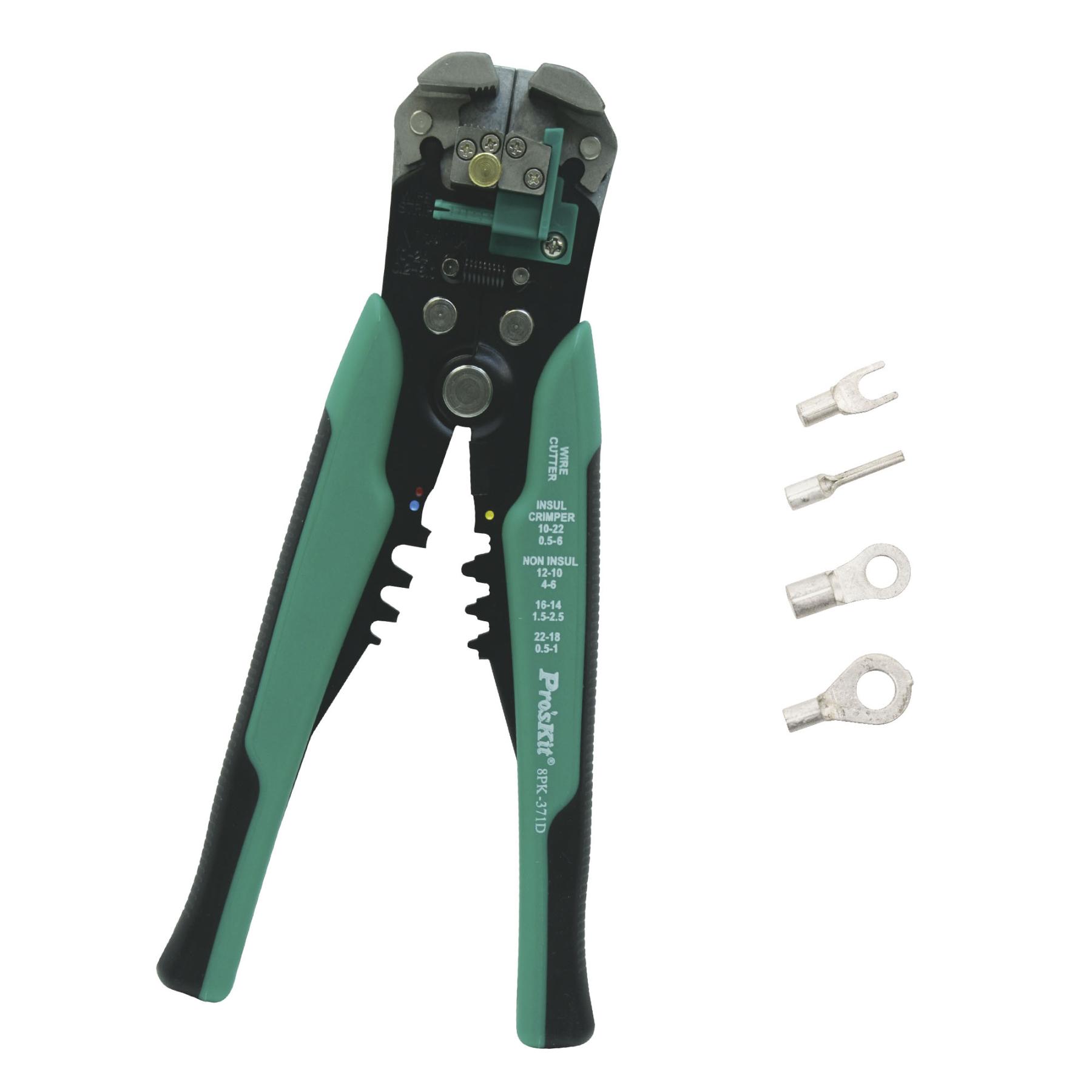 Pro’skit 8PK-371D kábelcsupaszoló és préselő fogó, 210 mm, több féle mérethez, rögzíthető csupaszolási hossz