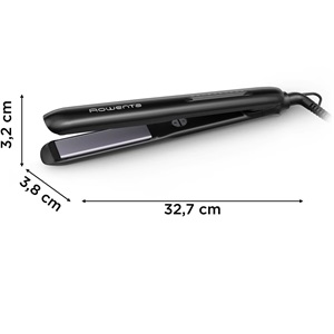 Minden nap számíthatsz a vasalóval való kényelmes hajformázásra, mivel a kábel hossza 1,8 m. Teljes szabadságot élvezhetsz, miközben formázod a hajad, a kábel nem fog beleakadni semmibe. A híres Rowenta hajegyenesítő hossza 327 mm. Tömege 400 g.