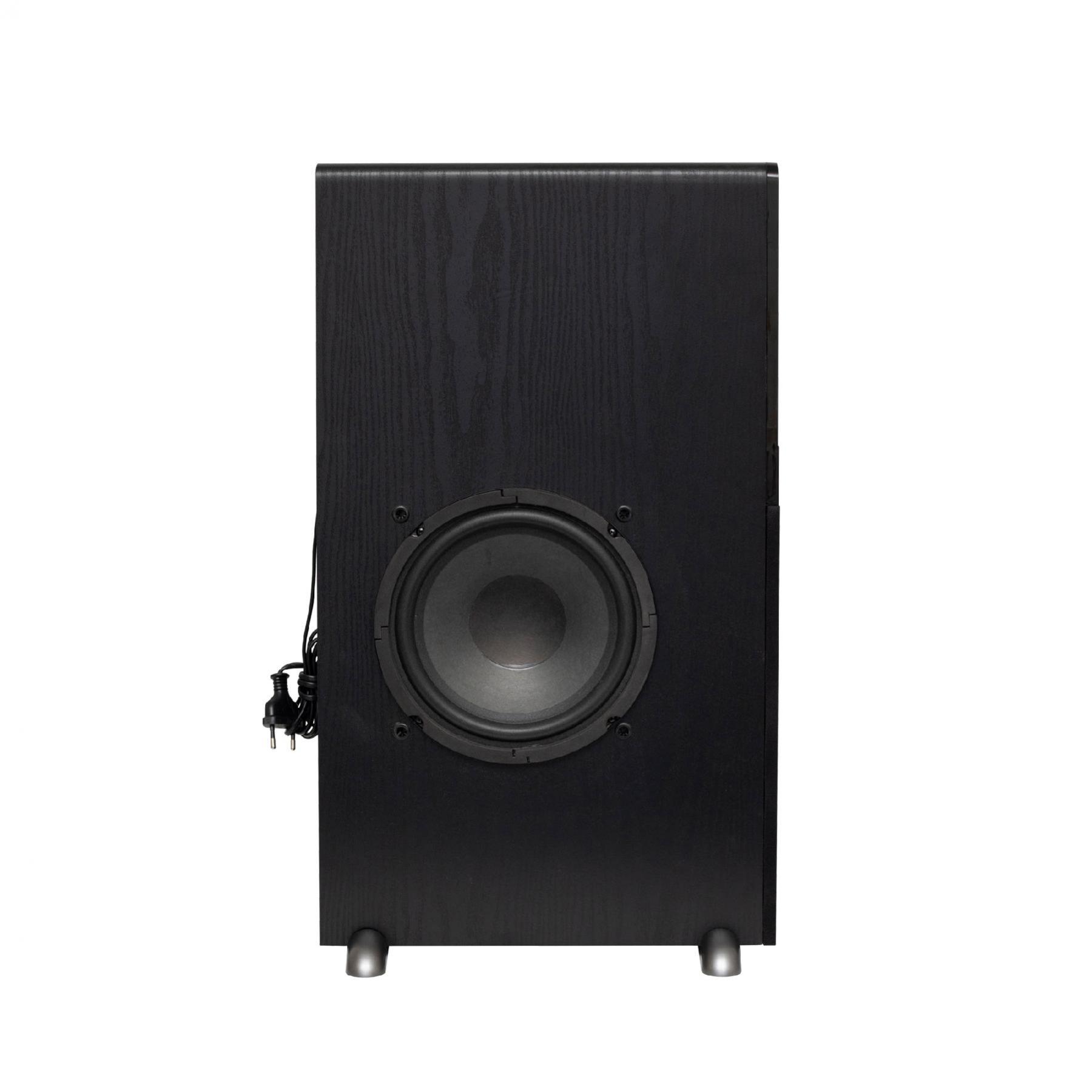 Az elegáns MDF fa konstrukció nemcsak esztétikus, de robusztus is, így hosszú távon is megbízhatóan működik. A LED kijelző fényereje állítható, a rendszer pedig érintőgombokkal is vezérelhető, ami modern és könnyen kezelhető felhasználói élményt biztosít. A csomag tartalmaz egy távirányítót, amely két AAA elemmel működik (nem tartozék), valamint a szükséges audio csatlakozókábelt és dísztalpakat, amelyek a hangdobozok stabilitásáról gondoskodnak.