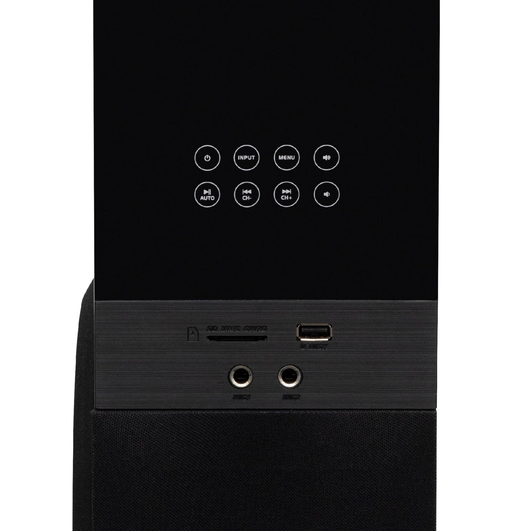 A 2 x RCA vezetékes sztereo audio bemenet révén a hangrendszer könnyedén csatlakoztatható más audioforrásokhoz is, ideális például televíziókhoz, ha jobb hangminőséget szeretne. A karaoke rajongók számára különösen előnyös a két 6,3 mm-es mikrofonbemenet és a szabályozható visszhang funkció, amely teljessé teszi a szórakozást. A hangzás testre szabható a magas és mély hangszínszabályozó EQ segítségével, így mindig az adott műfajhoz igazíthatja a hangzást.