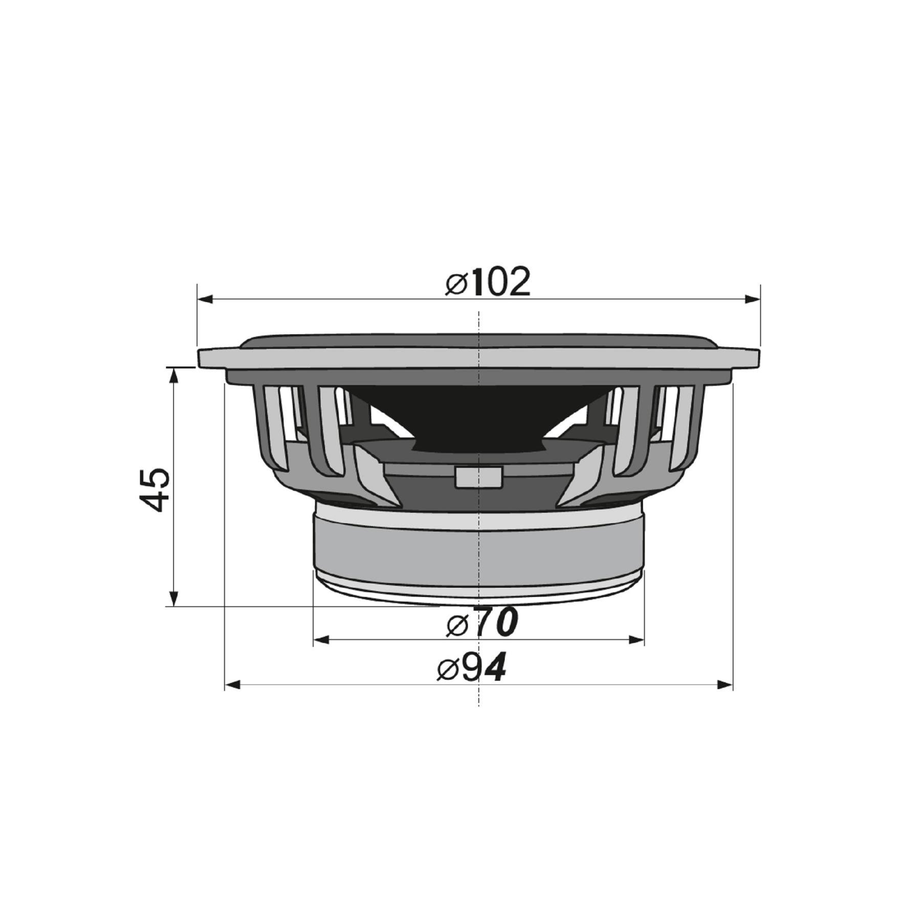 Ezek a mindössze 100 mm-es hangszórók 2 x 55 W maximális teljesítménnyel rendelkeznek, így összesen 110 W-os zenei terhelhetőséget biztosítanak, hogy autójában minden zene életre keljen. Ez a hangszórópár tökéletesen illeszkedik kisebb méretű autókba vagy korlátozott helyű beépítési területekre, miközben a hangzásban nem köt kompromisszumot. A mélyközép tartományt egy 100 mm-es PP kónusz hangszóró biztosítja, amely meglepően erőteljes basszust és tiszta középtartományt kínál. A magas hangok tisztaságáról egy 30 mm-es MYLAR dómsugárzó gondoskodik, amely részletesen és pontosan szólaltatja meg a magasabb frekvenciákat, így az énekhangok és hangszeres részletek is kristálytisztán szólnak.