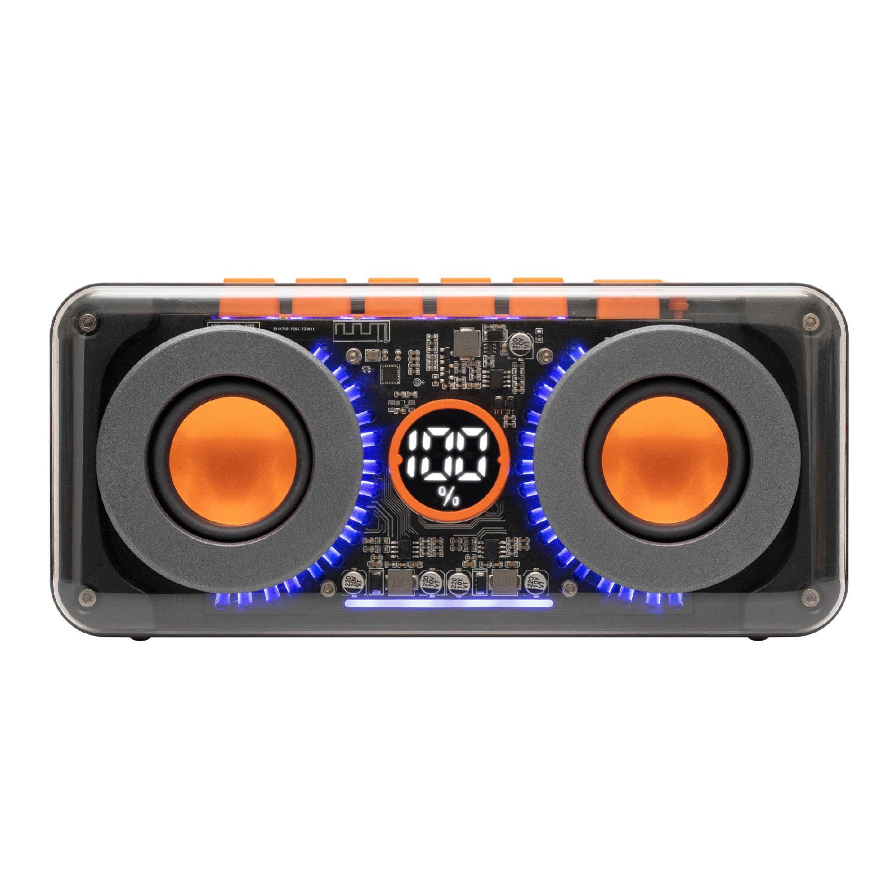 Ez a készülék innovatív technológiát és stílusos kialakítást ötvöz. A változtatható RGB LED fényjátékának köszönhetően hangulatához igazíthatja a környezetét, míg a digitális hangerő-kijelző és az akkumulátor töltöttség kijelzése biztosítja, hogy mindig képben legyen a készülék állapotával. Két hangszóró sztereó párosítása lehetővé teszi a kiterjesztett stereo élményt, így akár egy nagyobb térben is tökéletes hangzást biztosít.