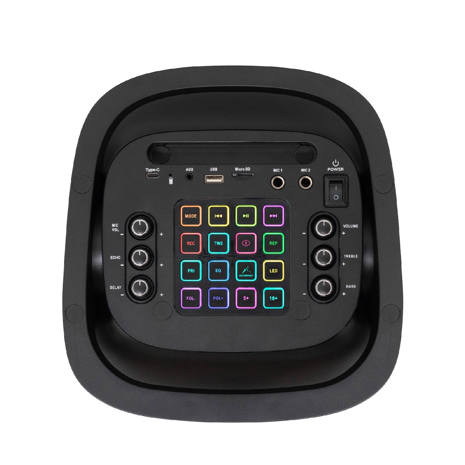 A beépített extra látványos LED fényhatások vizuális élményt is nyújtanak, így a zene ritmusára pulzáló fények még hangulatosabbá teszik a bulit. Ha azonban egy csendesebb környezetre van szükség, a fényjáték egyszerűen kikapcsolható.
