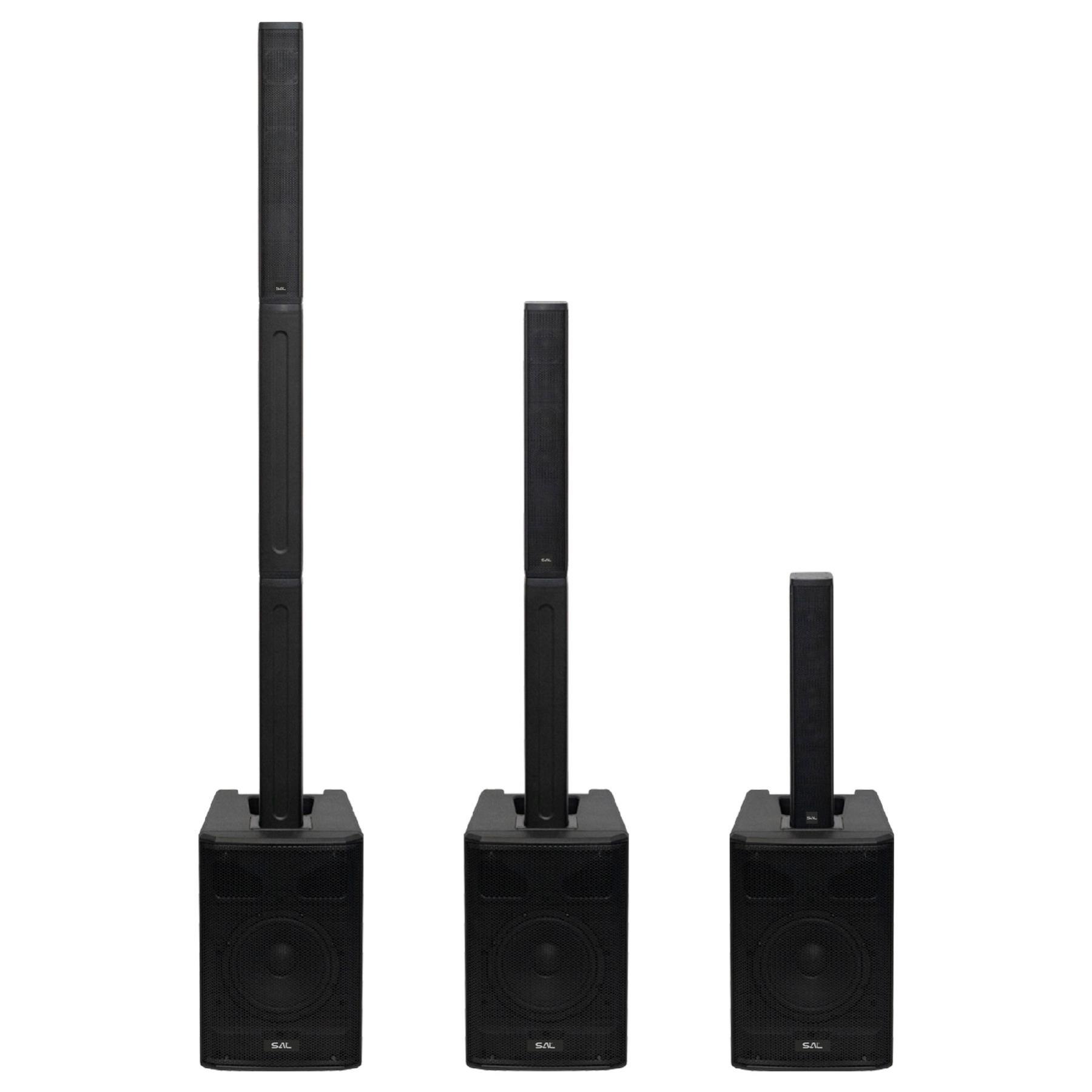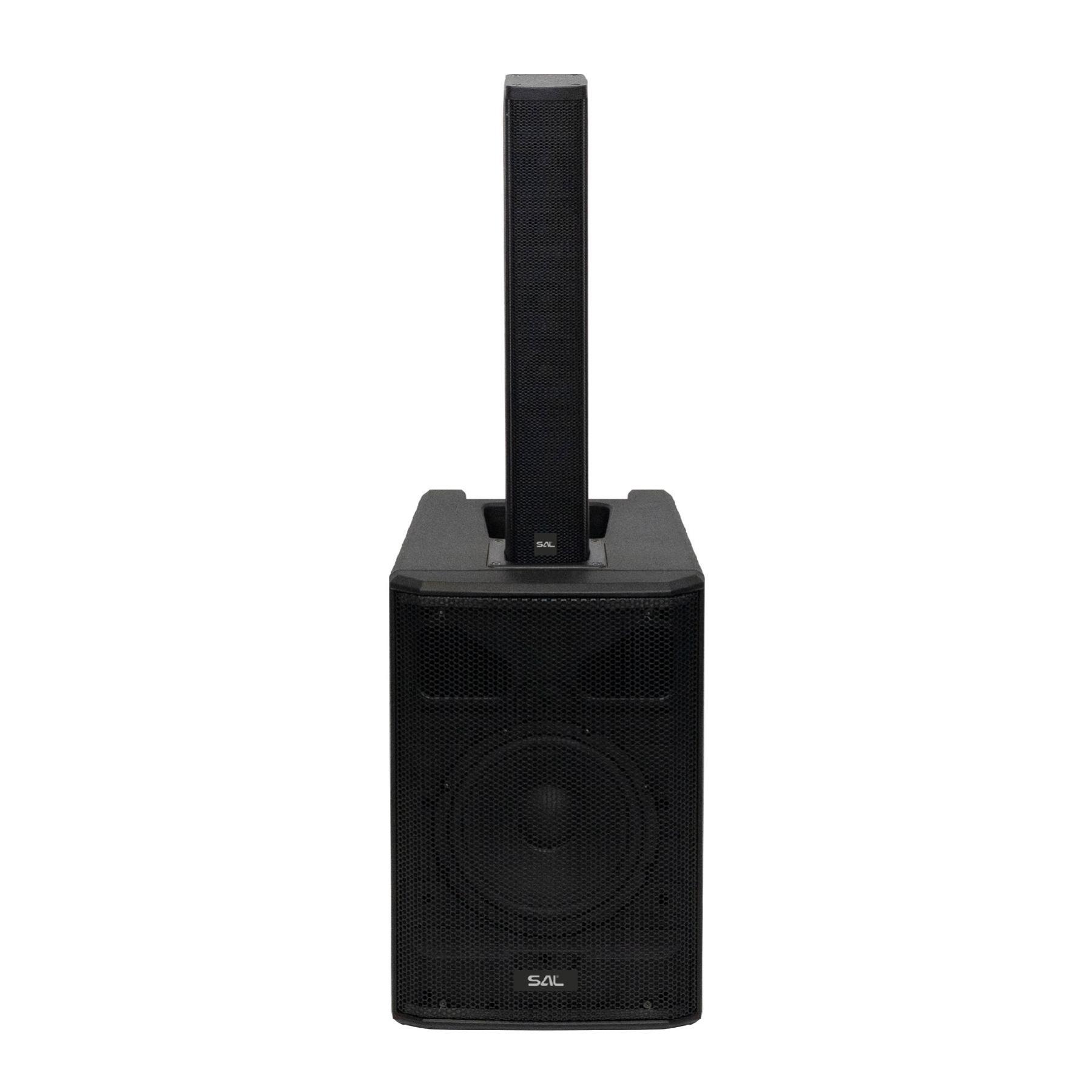 SAL PAS8W42S professzionális oszlopsugárzó hangrendszer, max. 600 W, 20cm mélysugárzó, 4×2” szélessávú szatellit hangszóró, aktív zenekari hangdoboz, Bluetooth, állvány