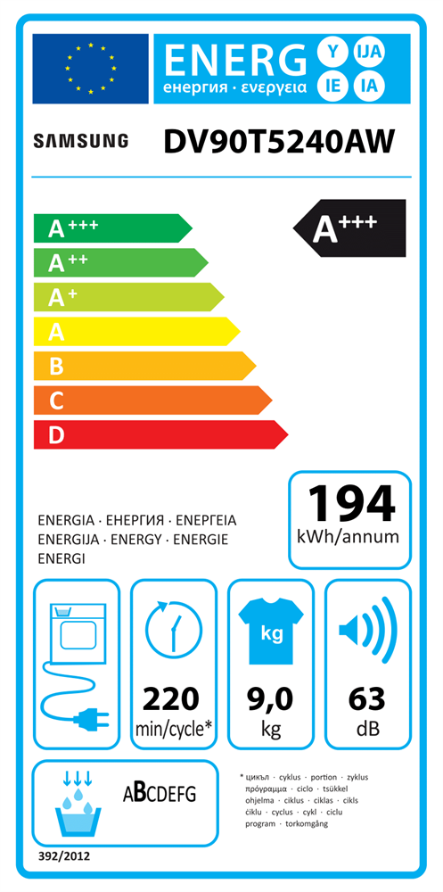 Samsung DV90T5240AW/S6 fehér, 9 kg, hőszivattyús, szárítógép DV90T5240AW/S6
